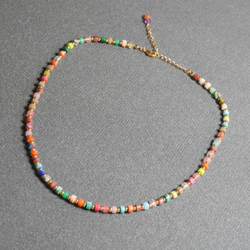 Collar pulsera traje collar al por mayor estilo bohemio japonés y coreano colorido cilíndrico piedra de color natural con cuentas