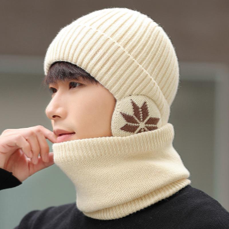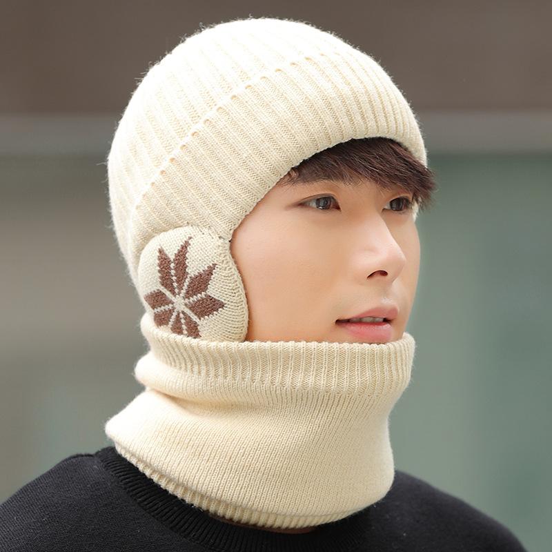 Gorro de invierno cálido para hombre, gorro de punto para ciclismo al aire libre, forro polar, con orejeras de hoja de arce, gorro de lana, gorro juvenil para hombre.