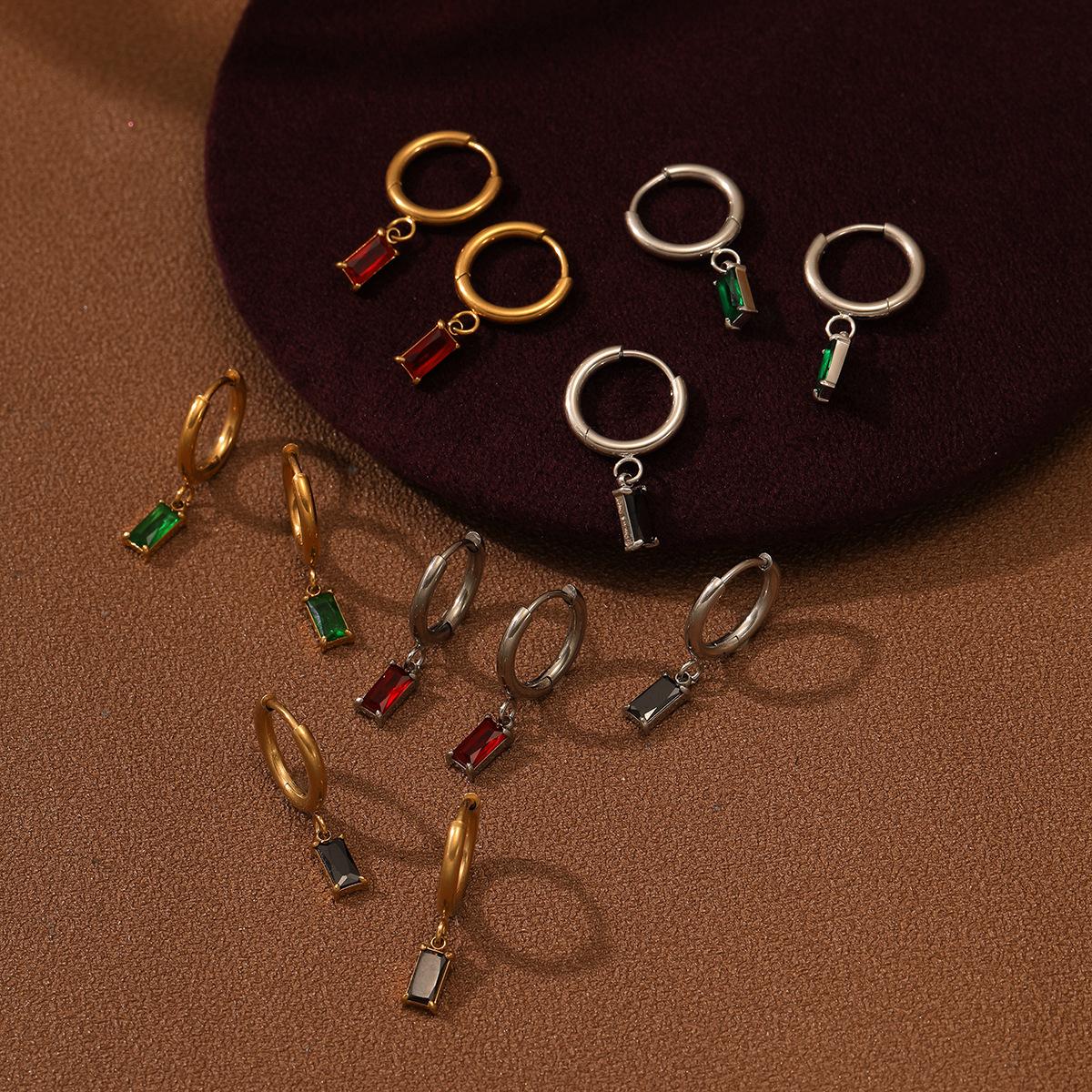 Aretes europeos y americanos simples elegantes rectangulares coloridos de circonita acero de titanio diseño nicho femenino versátiles modernos personalizados