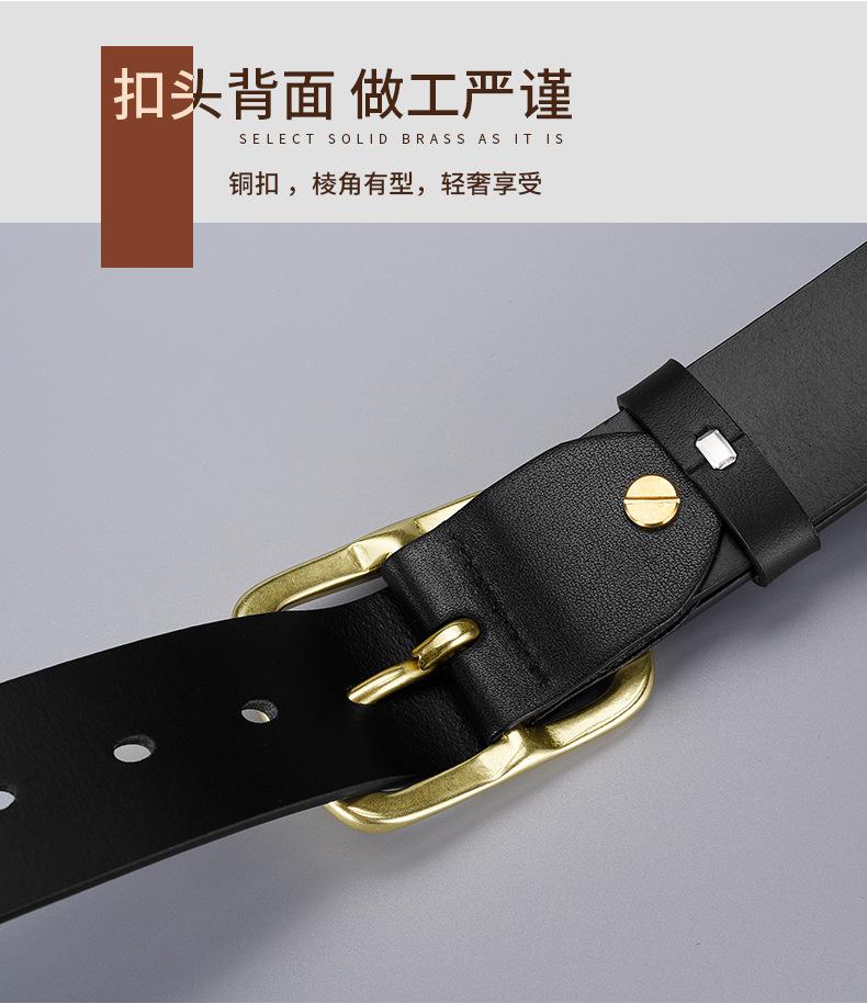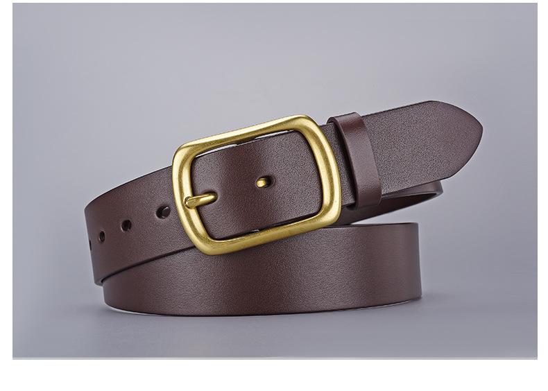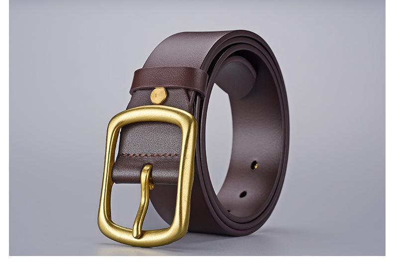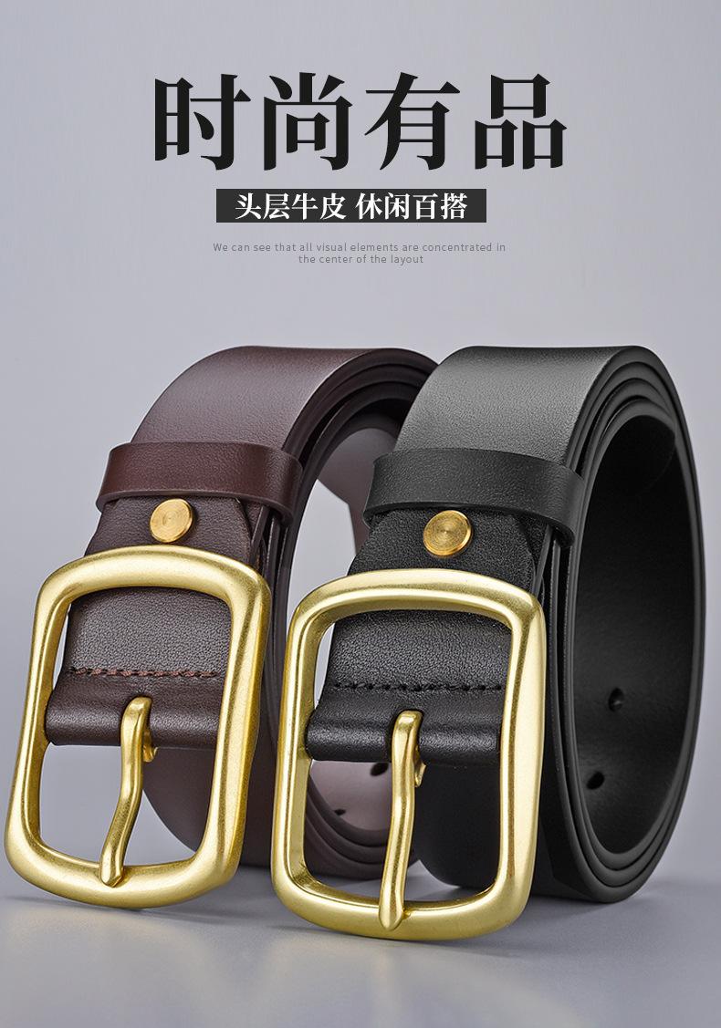 | Cinturón informal de moda, estilo moderno, de piel auténtica, con capa superior de piel de vaca, para hombre, con hebilla de pasador de piel auténtica, estilo retro, con hebilla de cobre, para pantalón. |
