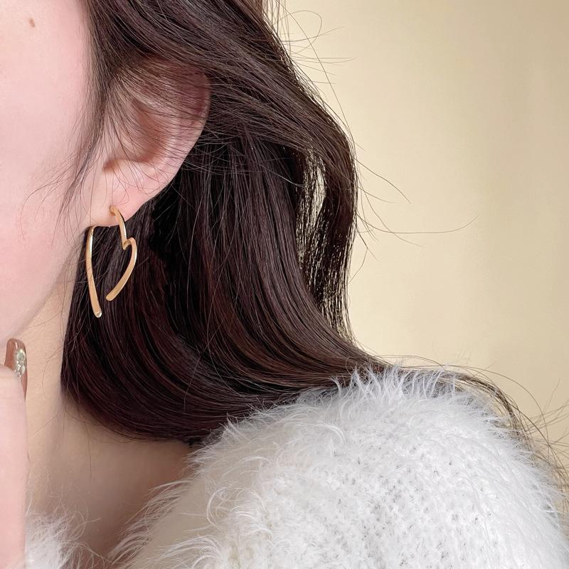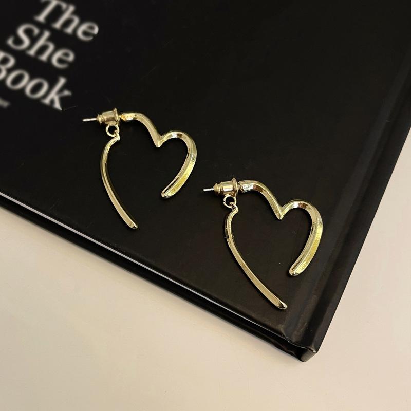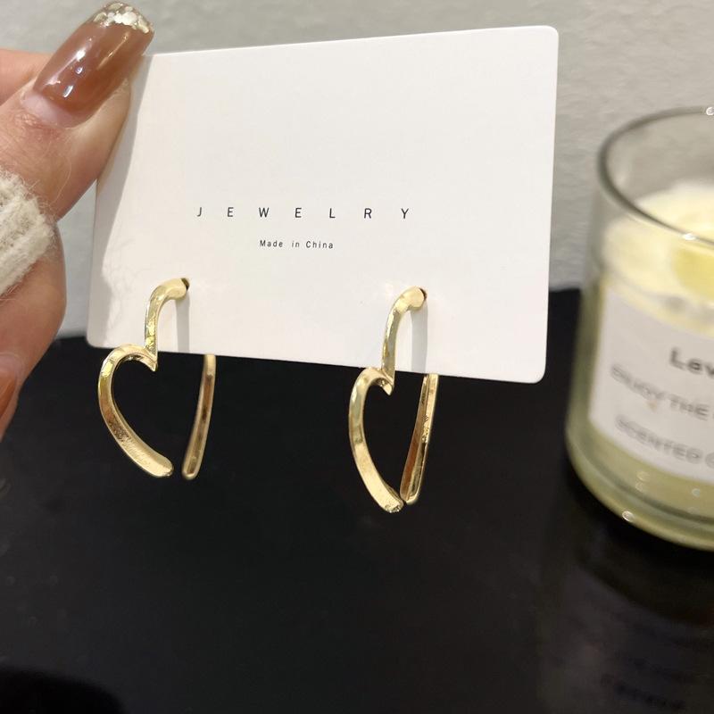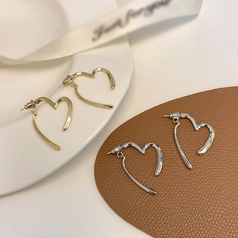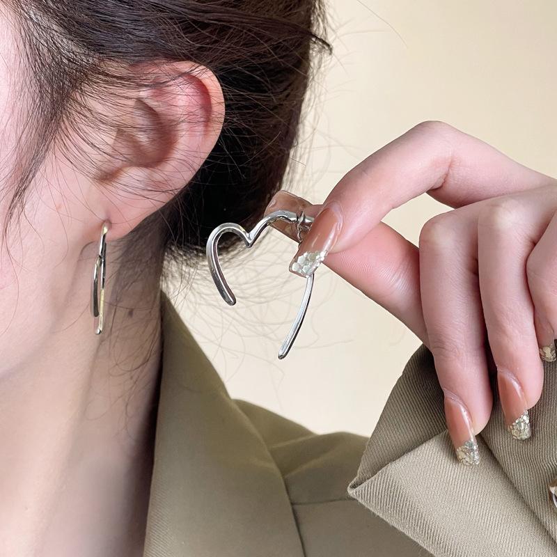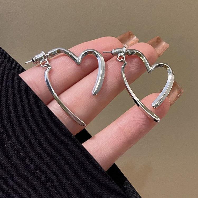Pendientes de amor sencillos personalizados de metal después de colgarlos. Pendientes de amor de dos usos. Pendientes de nicho de viento.