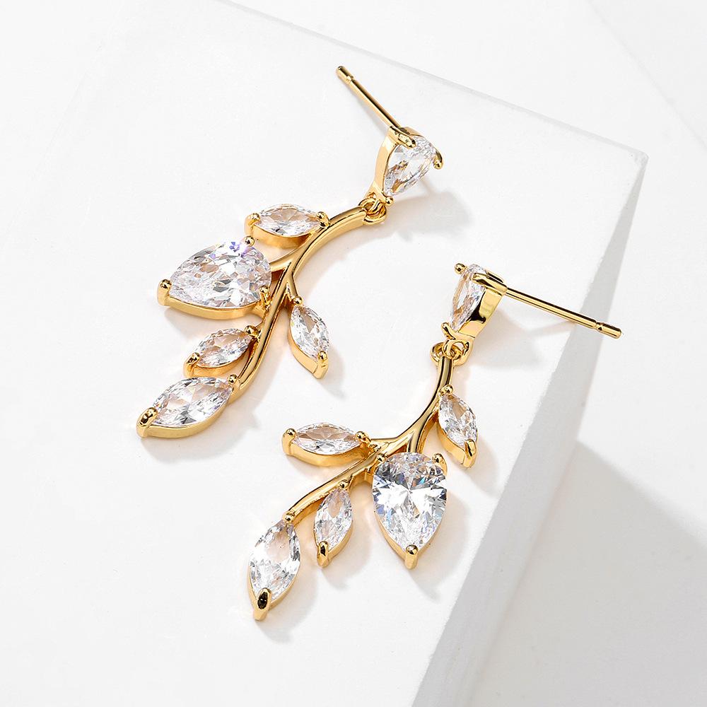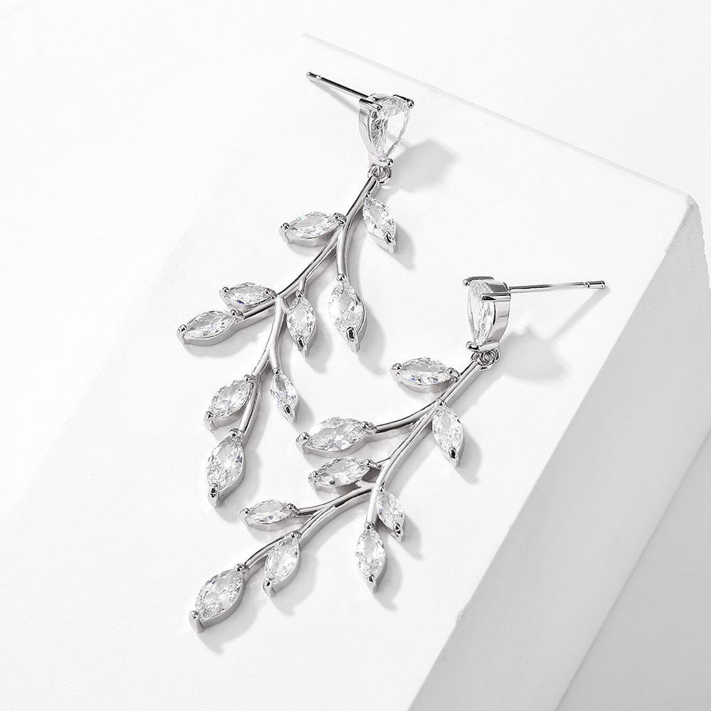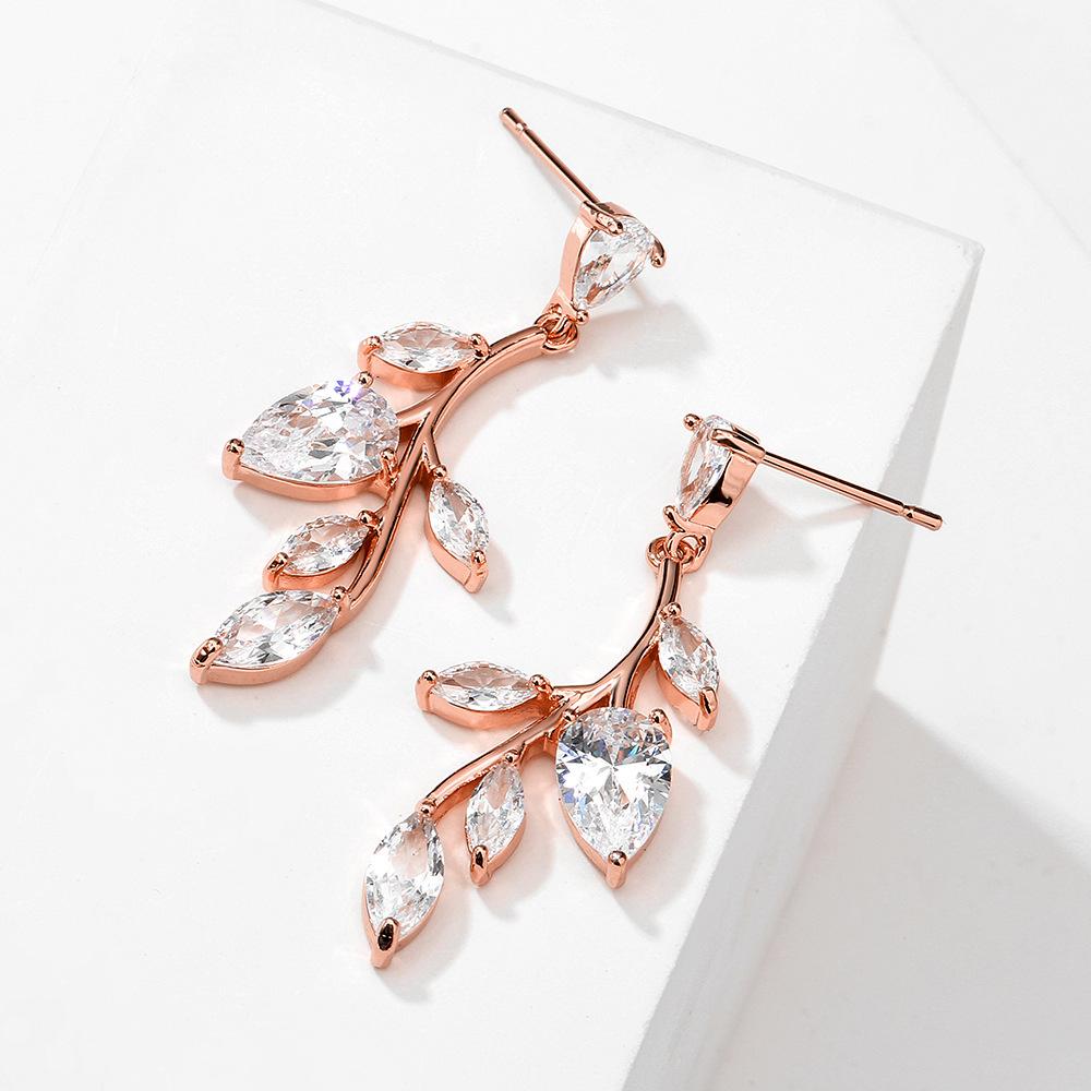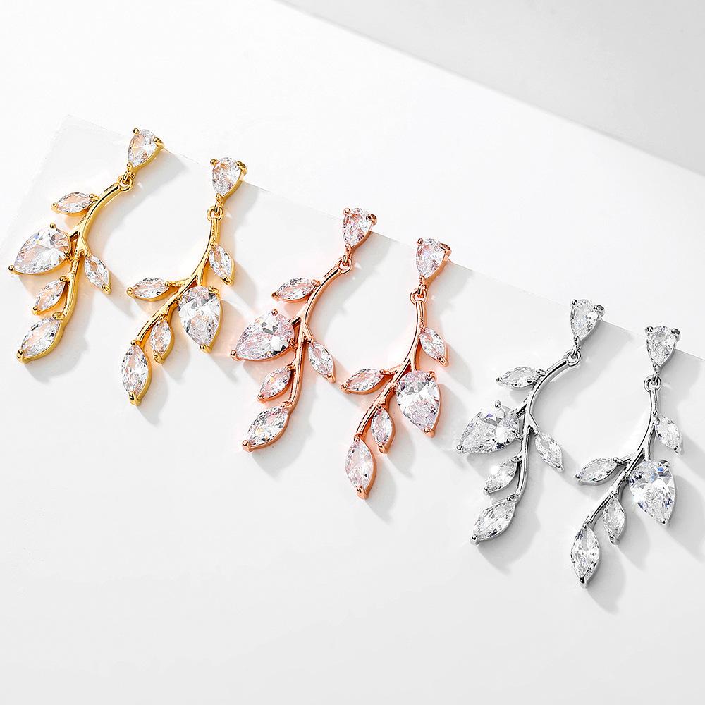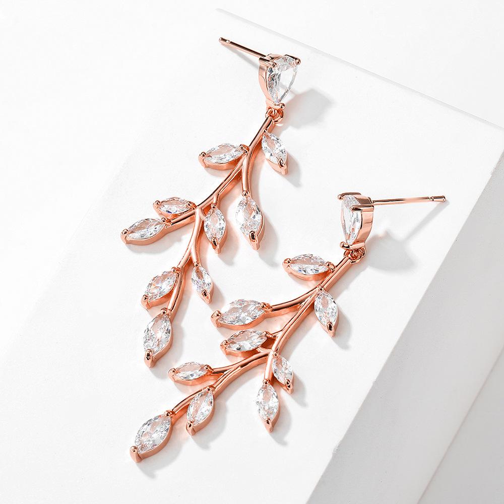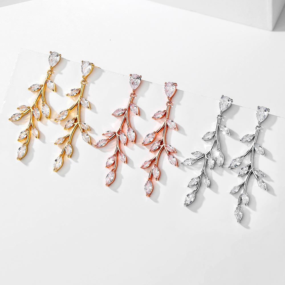 RAKOL - Pendientes de hoja de sauce creativos y distintivos de estilo coreano para mujer, elegantes, frescos, ligeros y de lujo, con microincrustaciones de circonita.