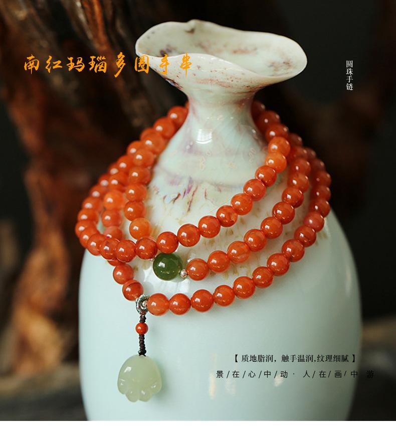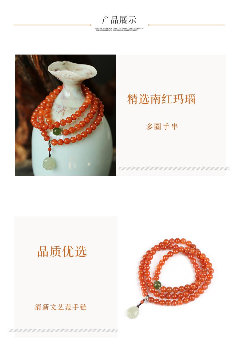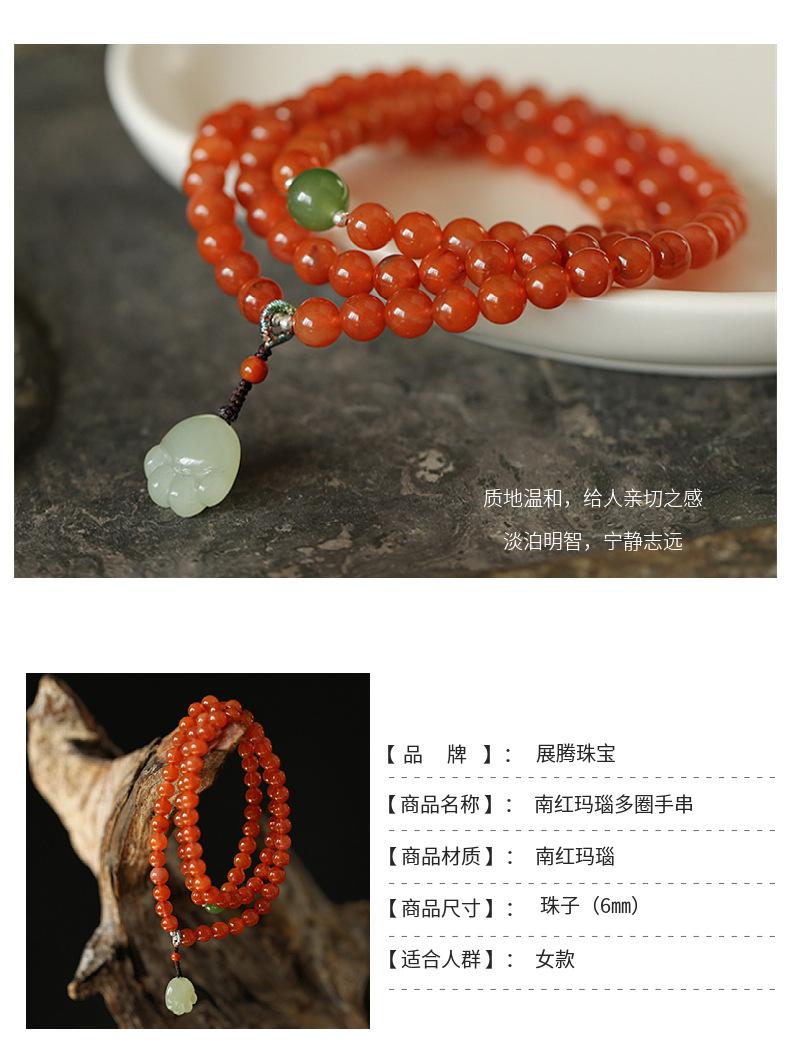 Pulsera de ágata roja natural del sur para mujer, pulsera de tres círculos, multicírculo, fresca, con diseño de abanico literario, venta al por mayor