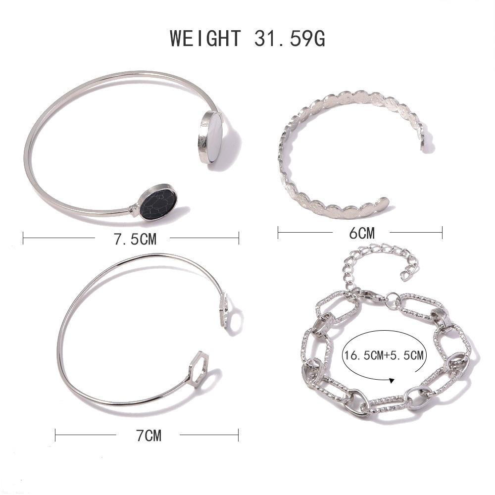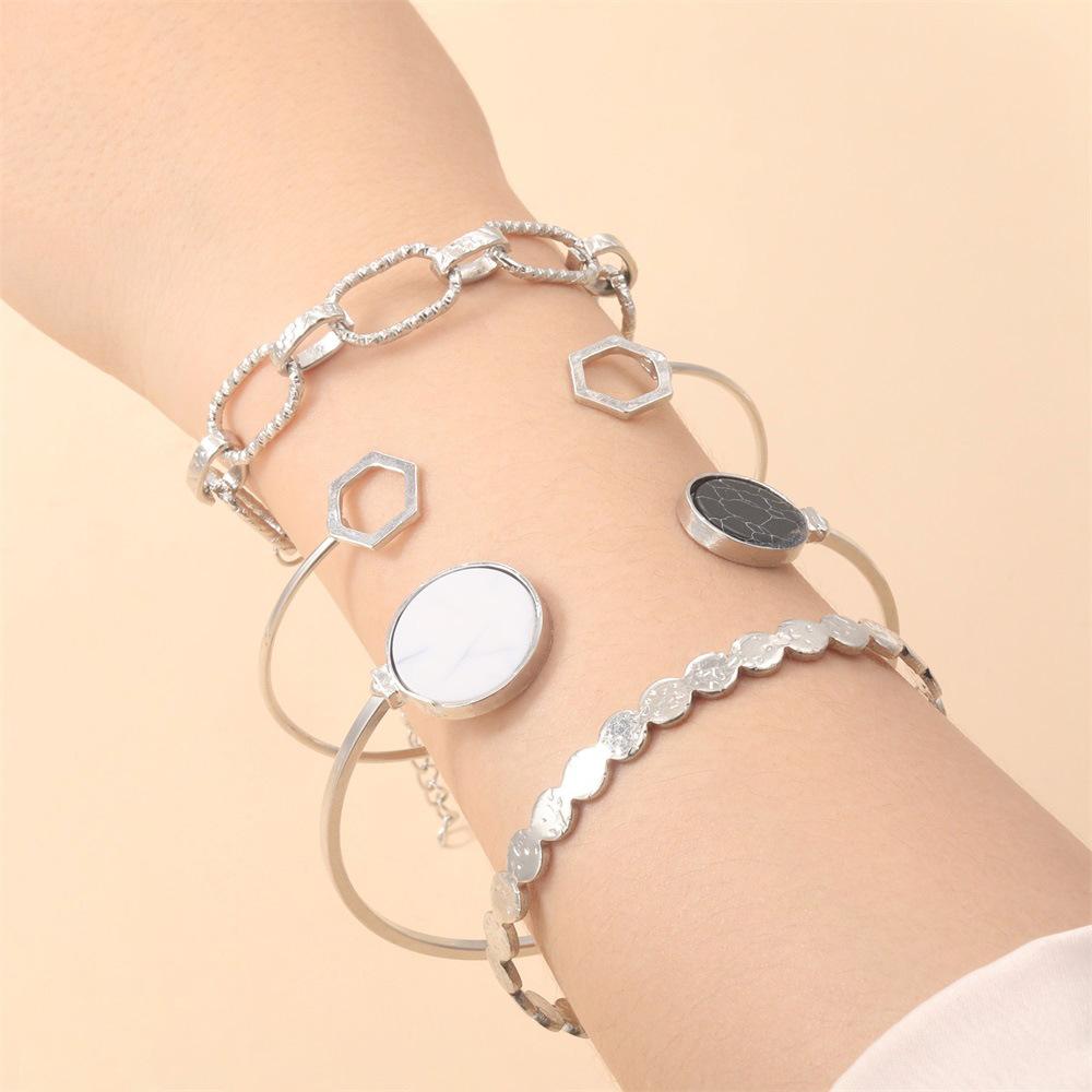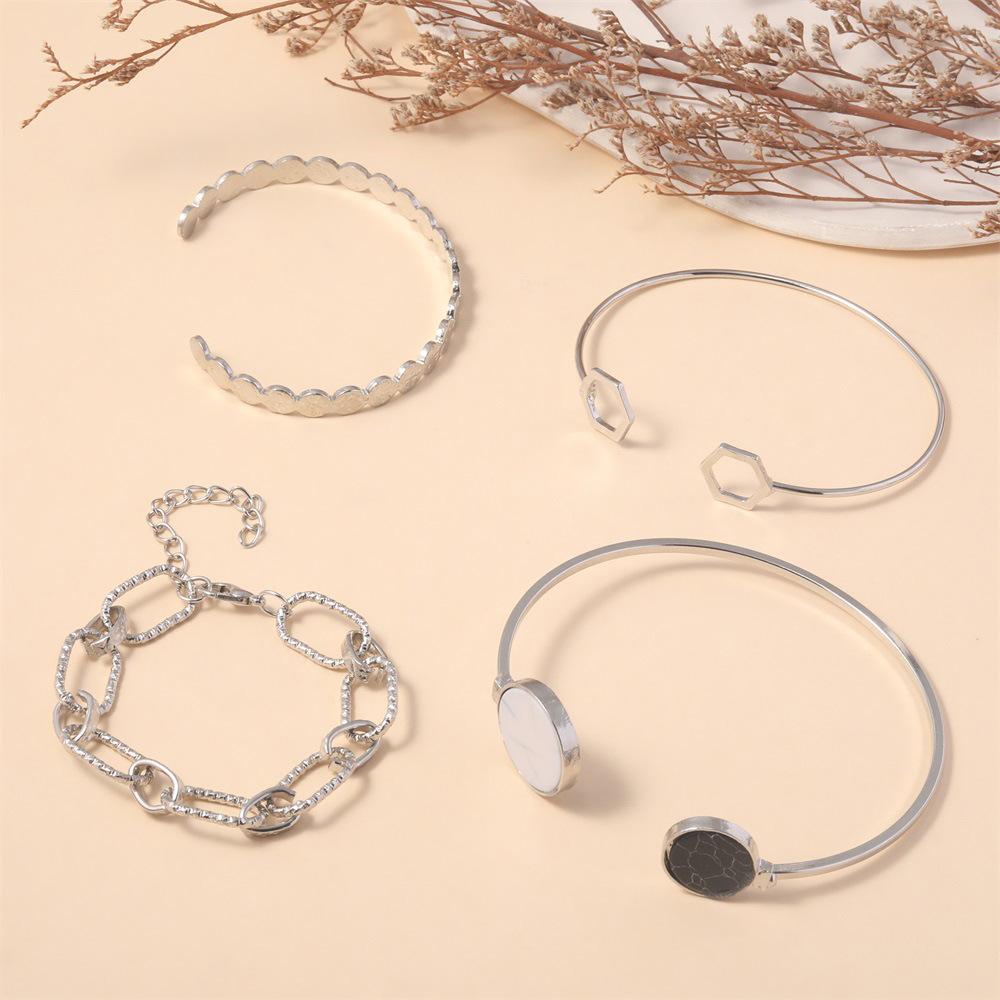 Pulsera de nueva combinación de comercio exterior transfronterizo, pulsera de juego de 4 piezas con apertura geométrica simple de personalidad europea y americana