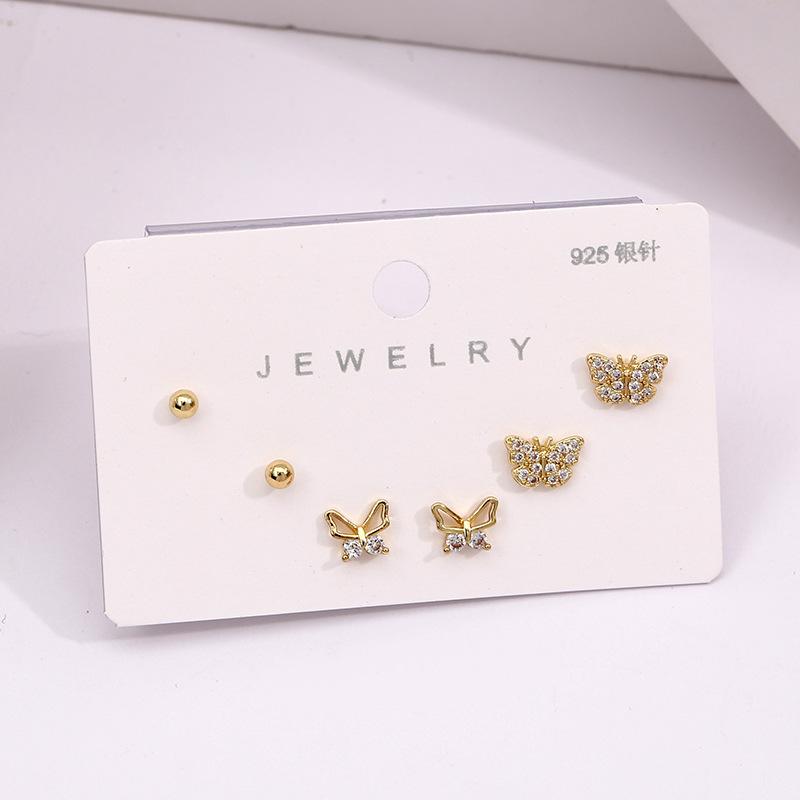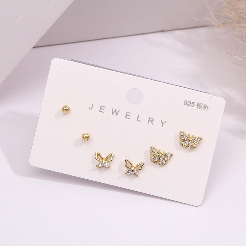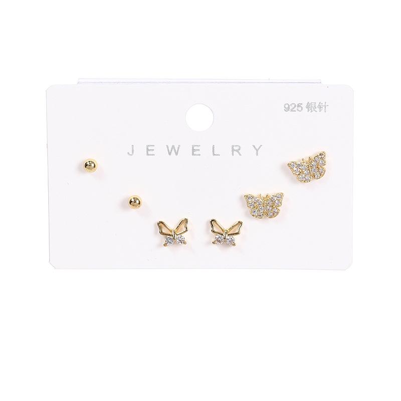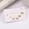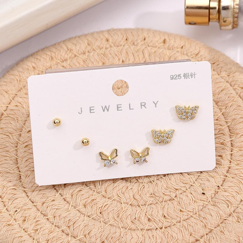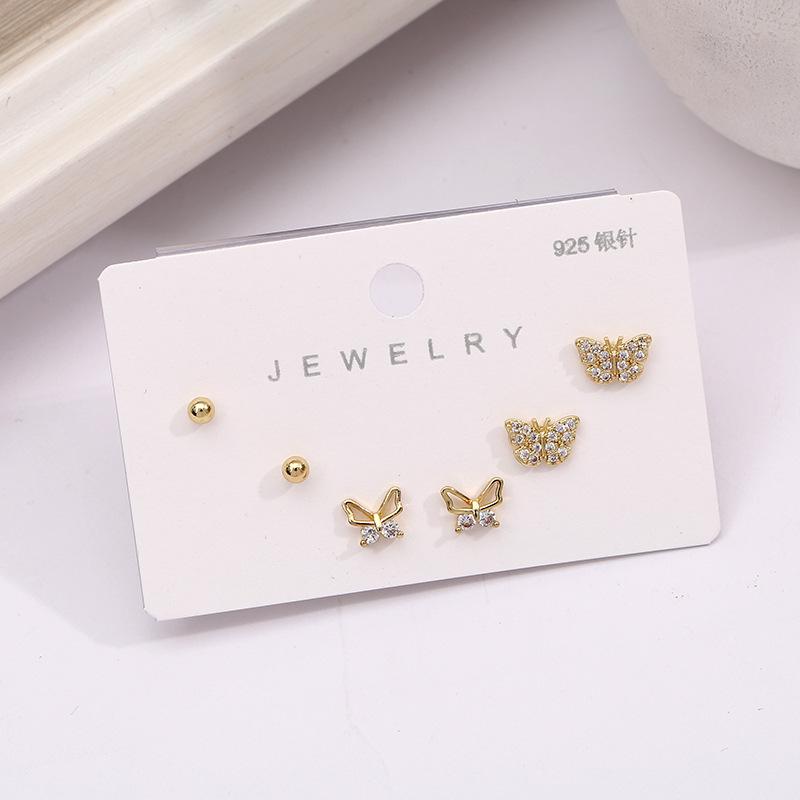 Conjunto de tres pendientes de aguja de plata s925 con elegante diseño de nicho, pendientes de mariposa con diamantes, joyería sencilla para las orejas de las mujeres.