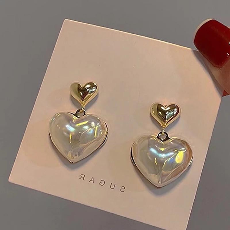 Aretes de Perlas de Amor para Mujer, Nuevos Aretes de Moda Trendy de Alta Gama, Aretes de Temperamento Coreano de Celebridad de Internet