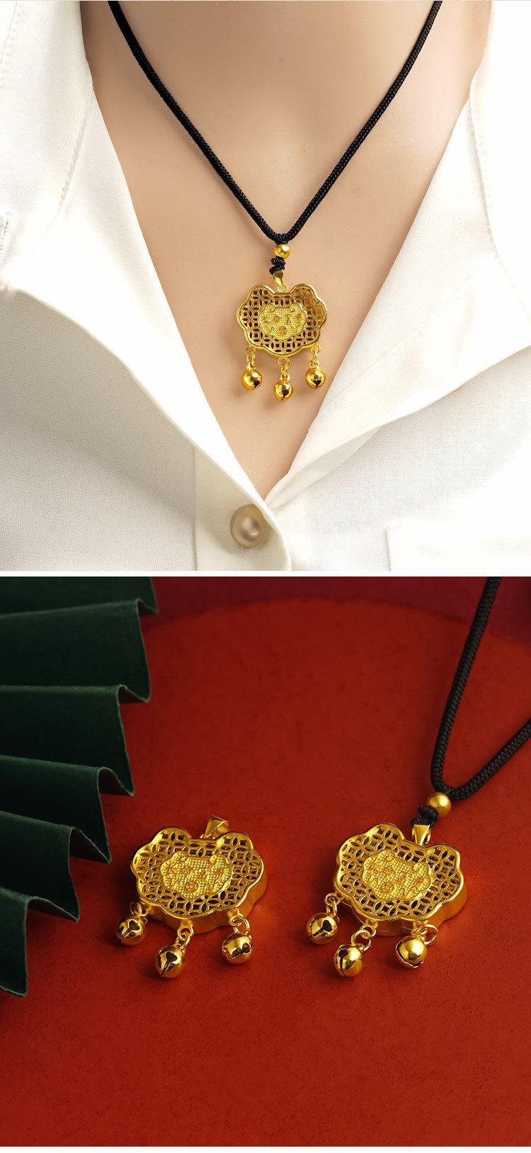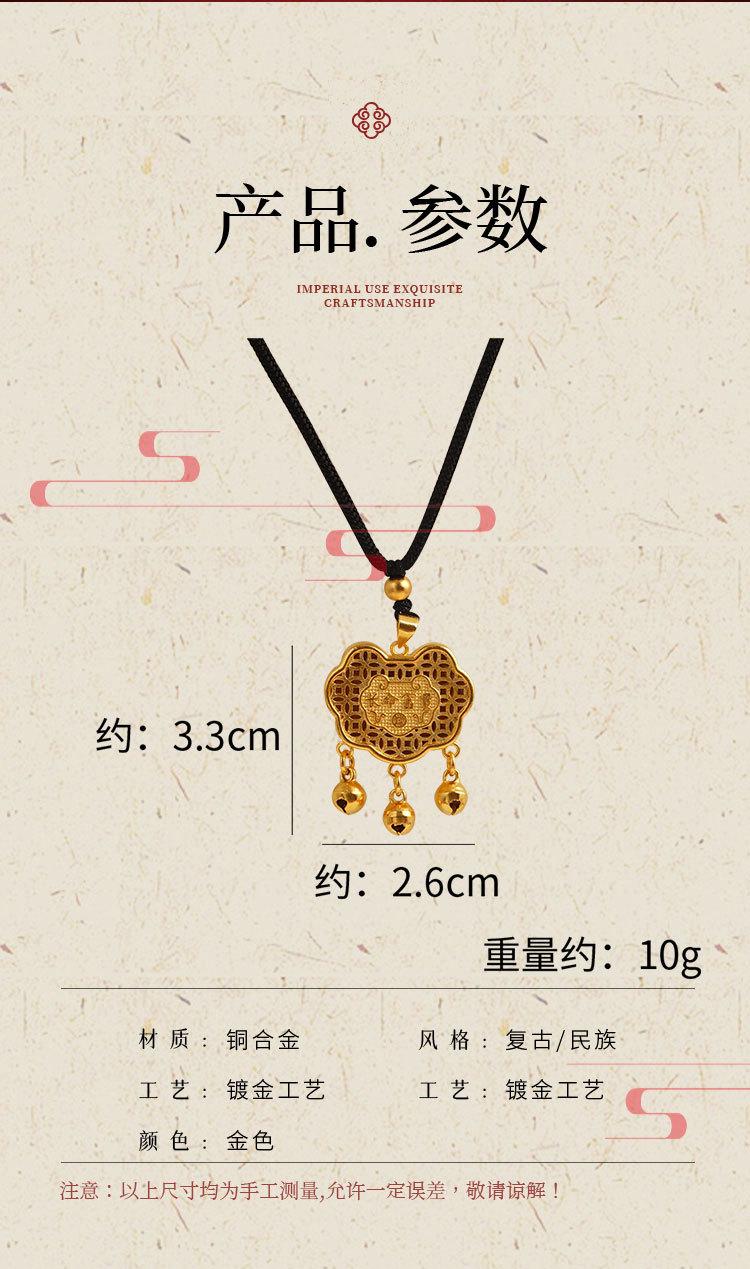 Collar con candado de corazón Ruyi de estilo chino de aleación de cobre, colgante de campana infantil para mujer, accesorios colgantes