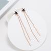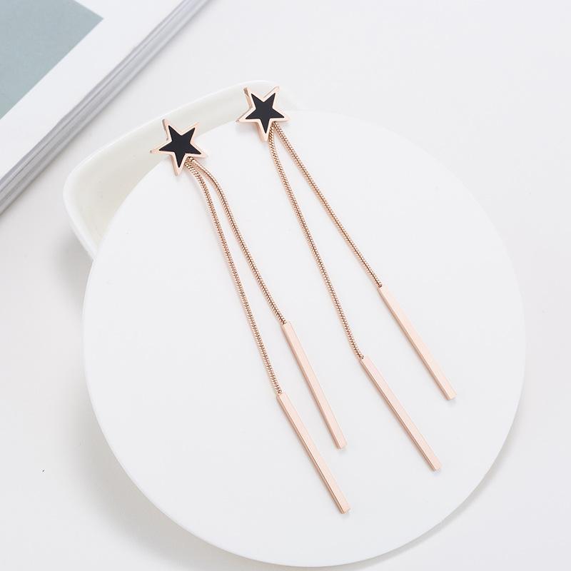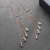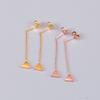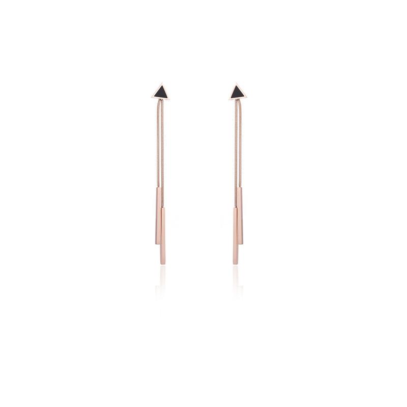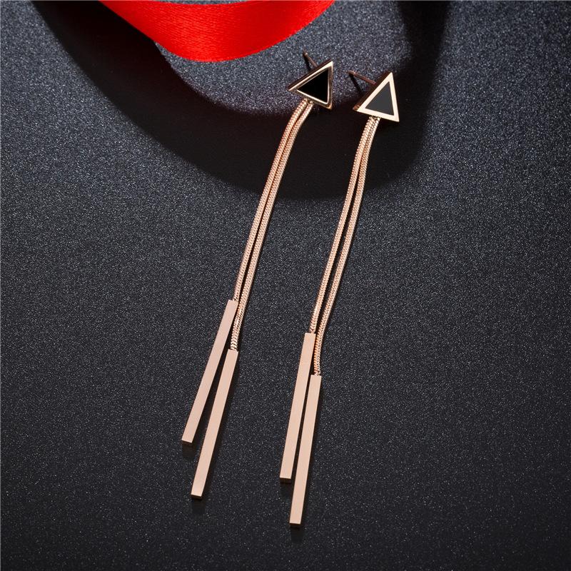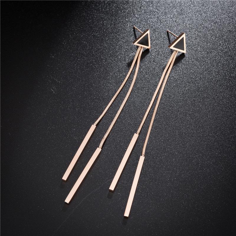 Nuevos aretes de acero de titanio oro rosa para mujer, aretes simples geométricos de triángulo con borla larga, joyería pequeña al por mayor