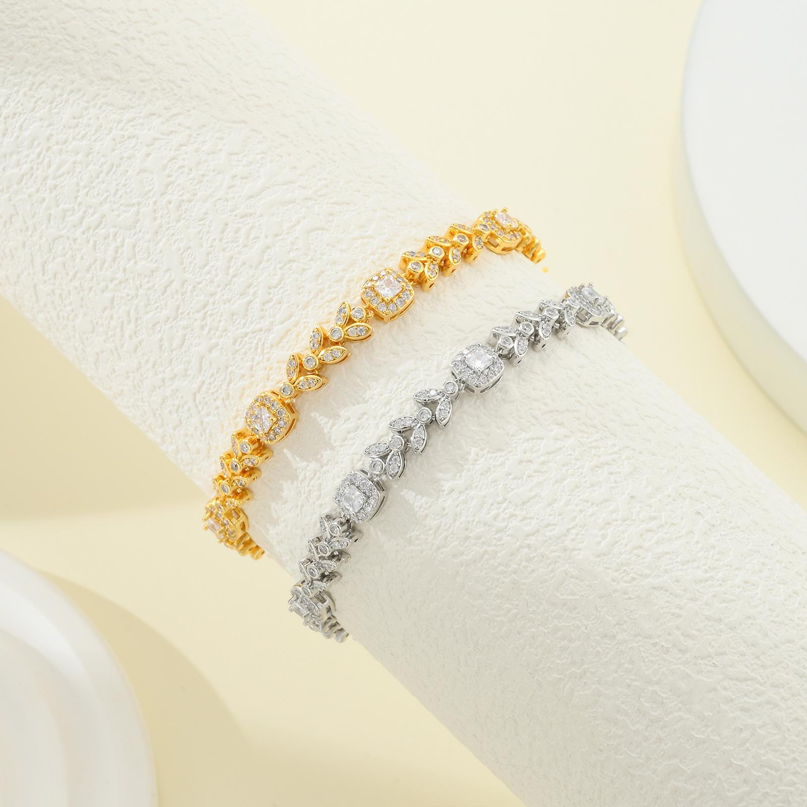 Pulsera europea y americana de pétalos de circonita 3A, pulsera de cobre de lujo transfronteriza con incrustaciones de circonitas, pulsera de moda para mujer, joyería