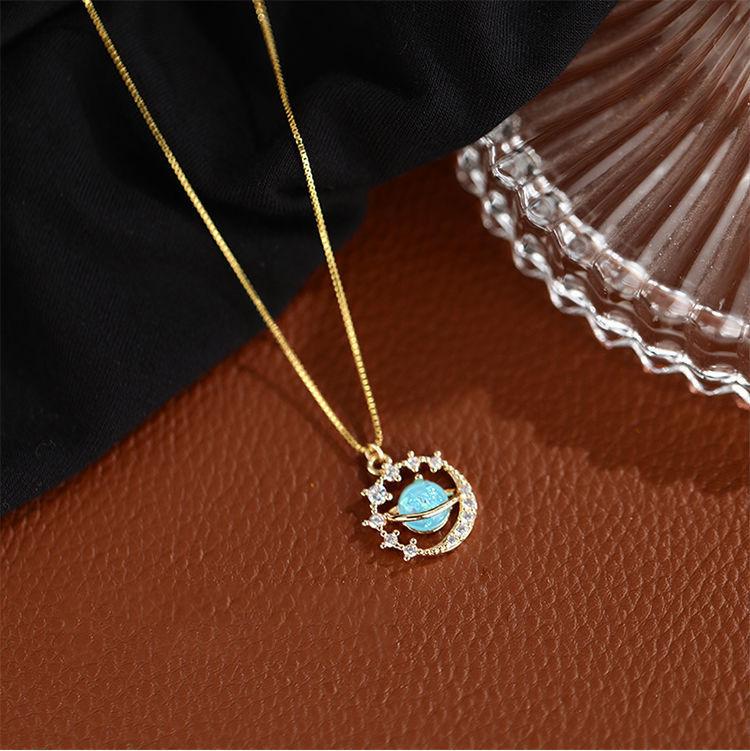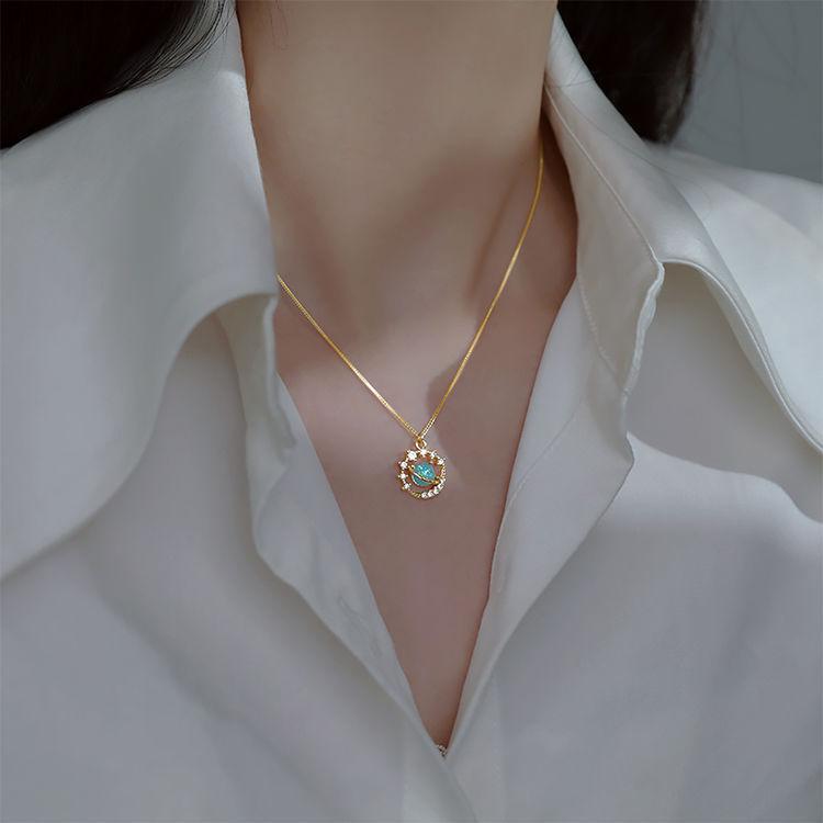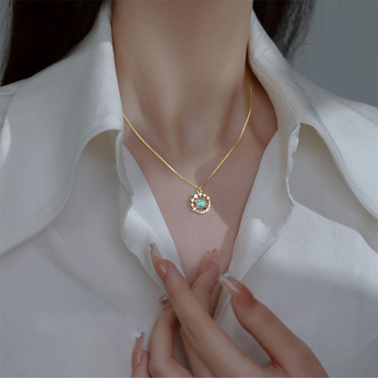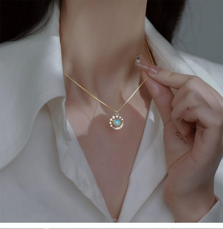 Collar Planeta Aurora Azul 2022, nuevo, para mujer, con luz de alta sensibilidad, diseño de nicho de lujo, cadena de clavícula, regalo