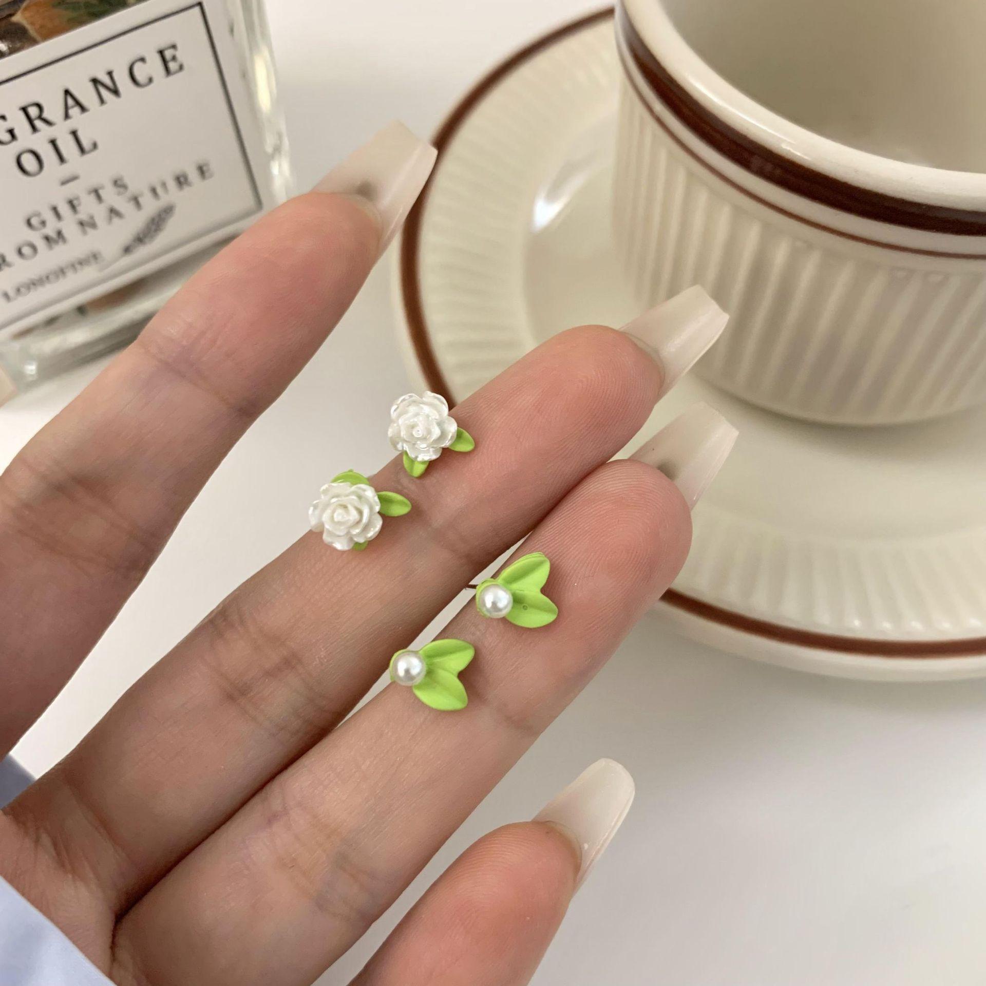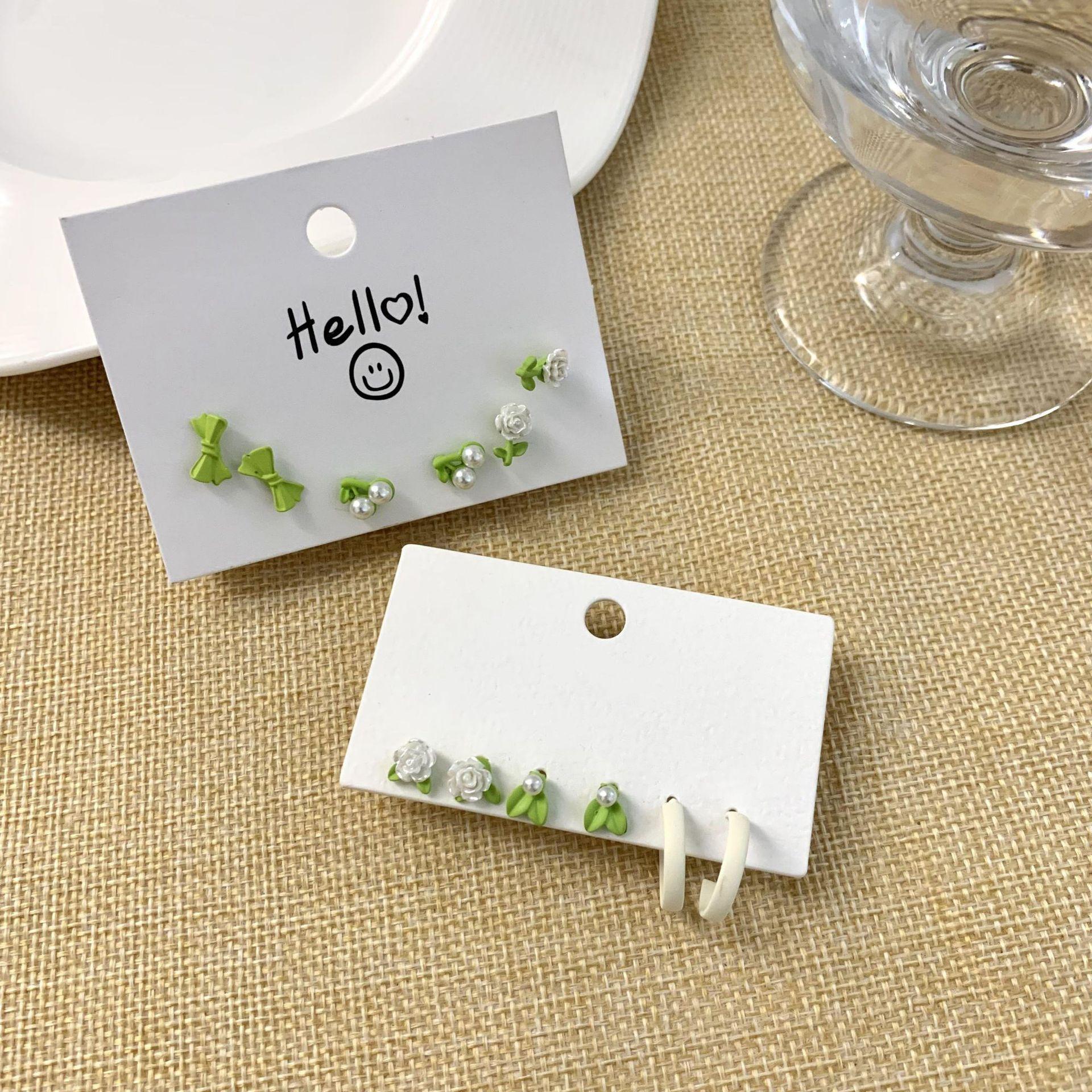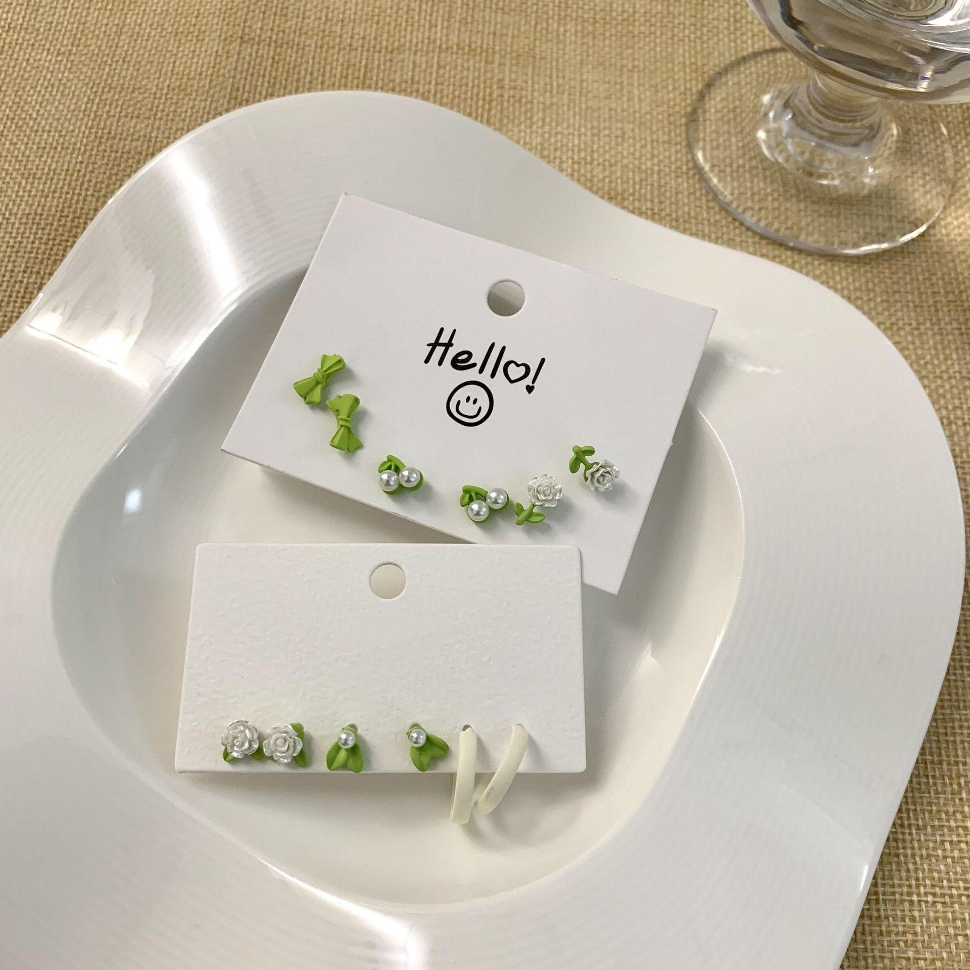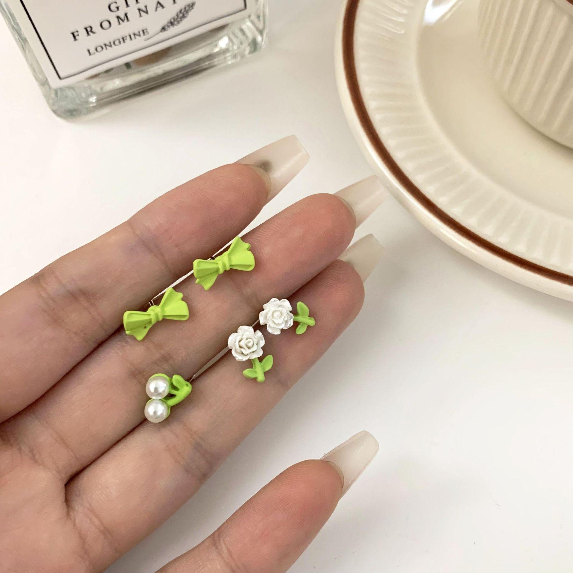 Nuevos pendientes de flores verdes, conjunto de tres piezas, pequeños y exquisitos, con diseño de nicho que combina con todo, pendientes frescos y sencillos.