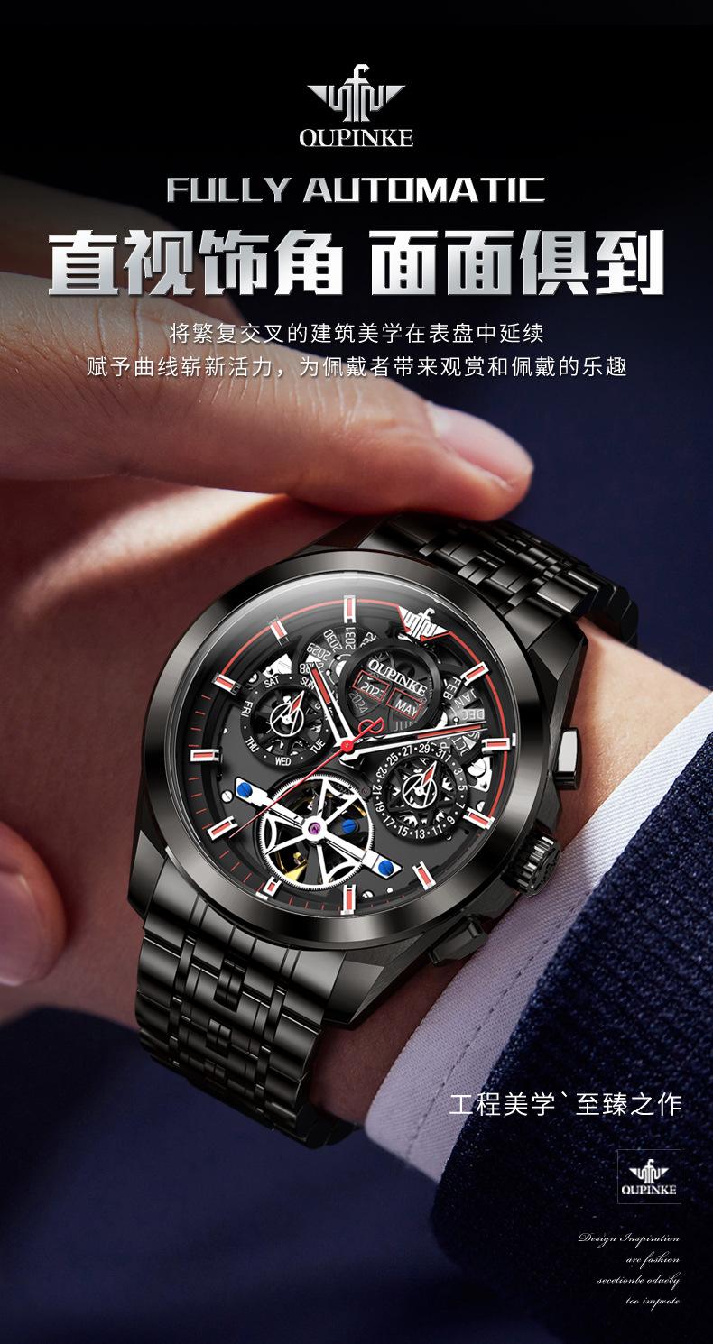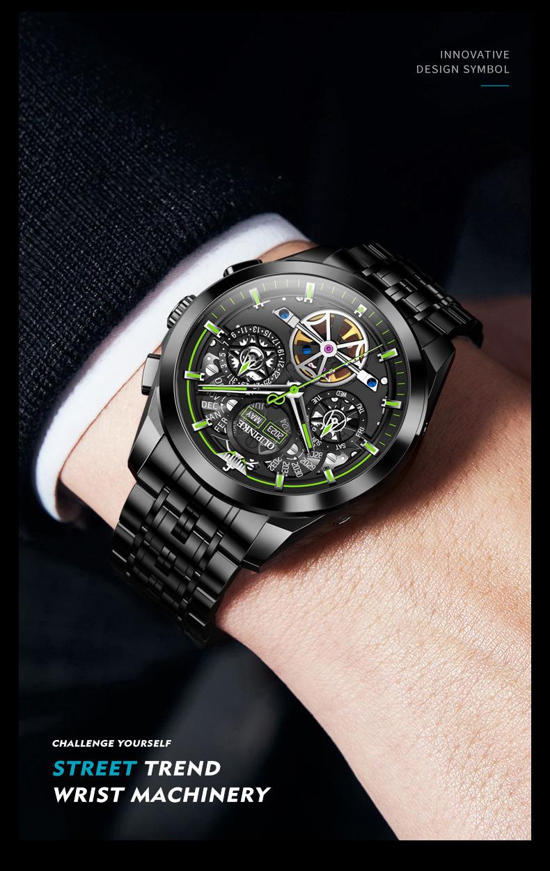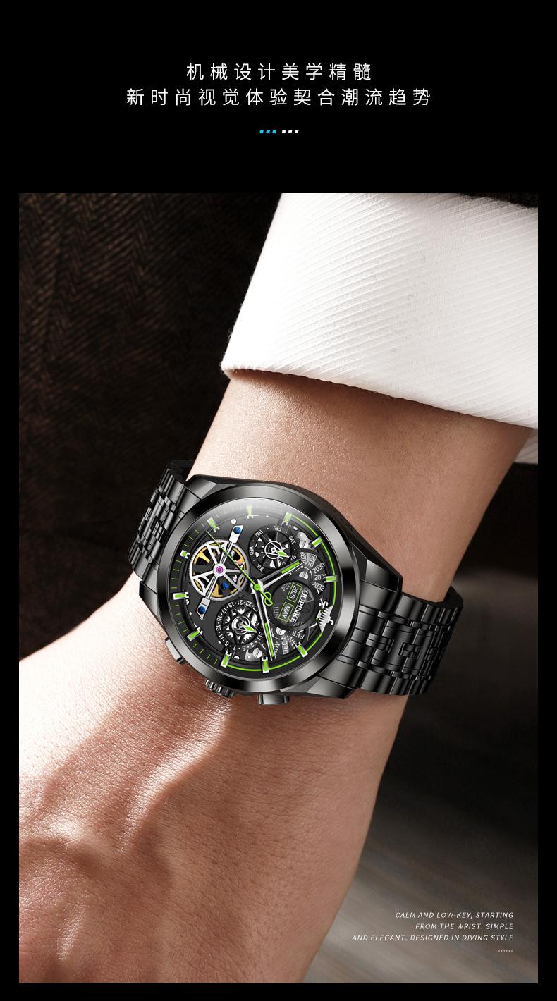 Entrega de una pieza Reloj Marca Pinke Europeo reloj mecánico multifuncional reloj de hombre de negocios correa de acero resistente al agua reloj de hombre reloj de hombre