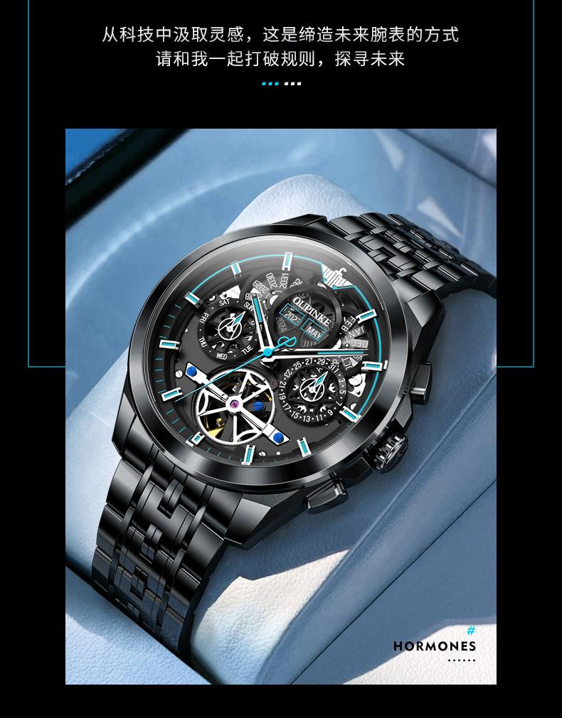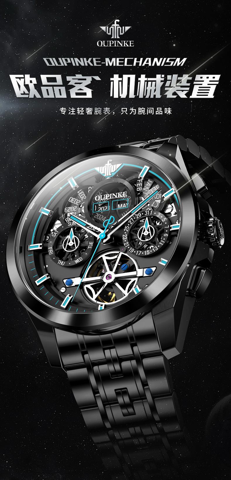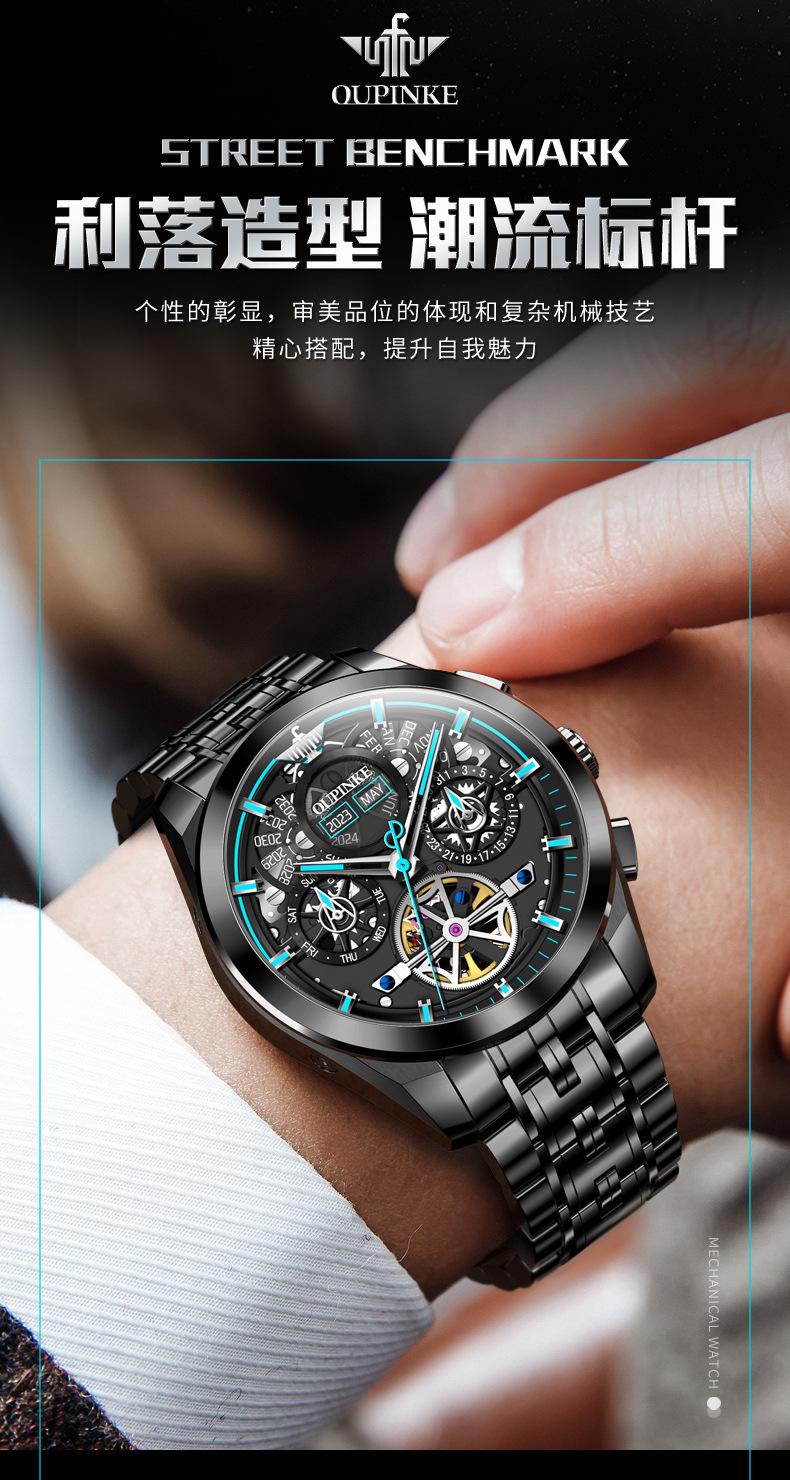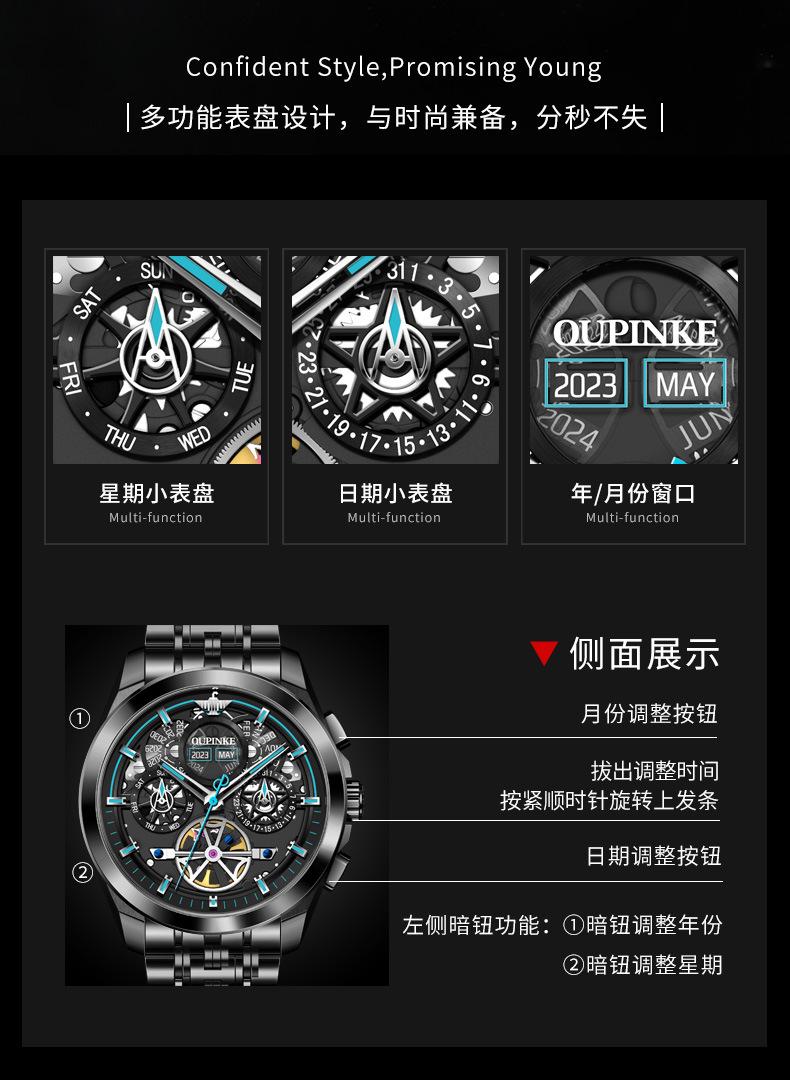 Entrega de una pieza Reloj Marca Pinke Europeo reloj mecánico multifuncional reloj de hombre de negocios correa de acero resistente al agua reloj de hombre reloj de hombre