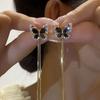 Pendientes de dos piezas elegantes y exquisitos que combinan con todo, con borlas de mariposa con incrustaciones de diamantes para mujer, pendientes largos que adelgazan el rostro.