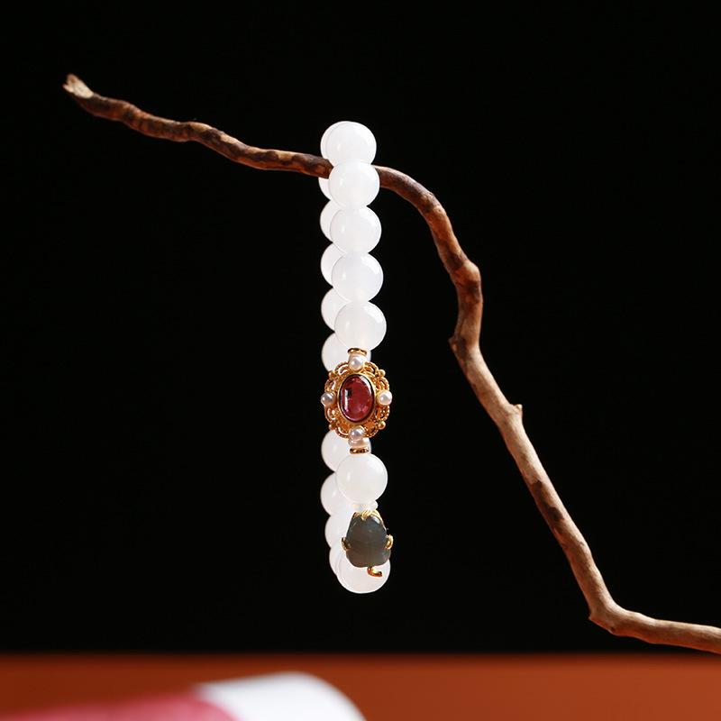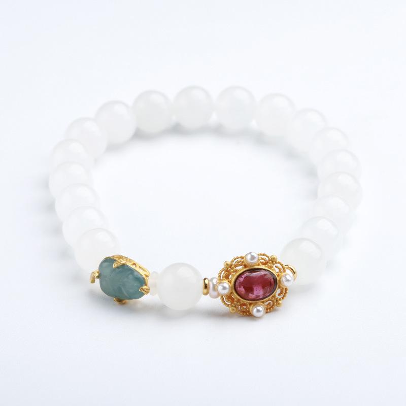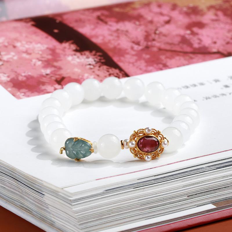 Pulsera Hoja de Jade Blanco Hetian 8MM Agua Azul |