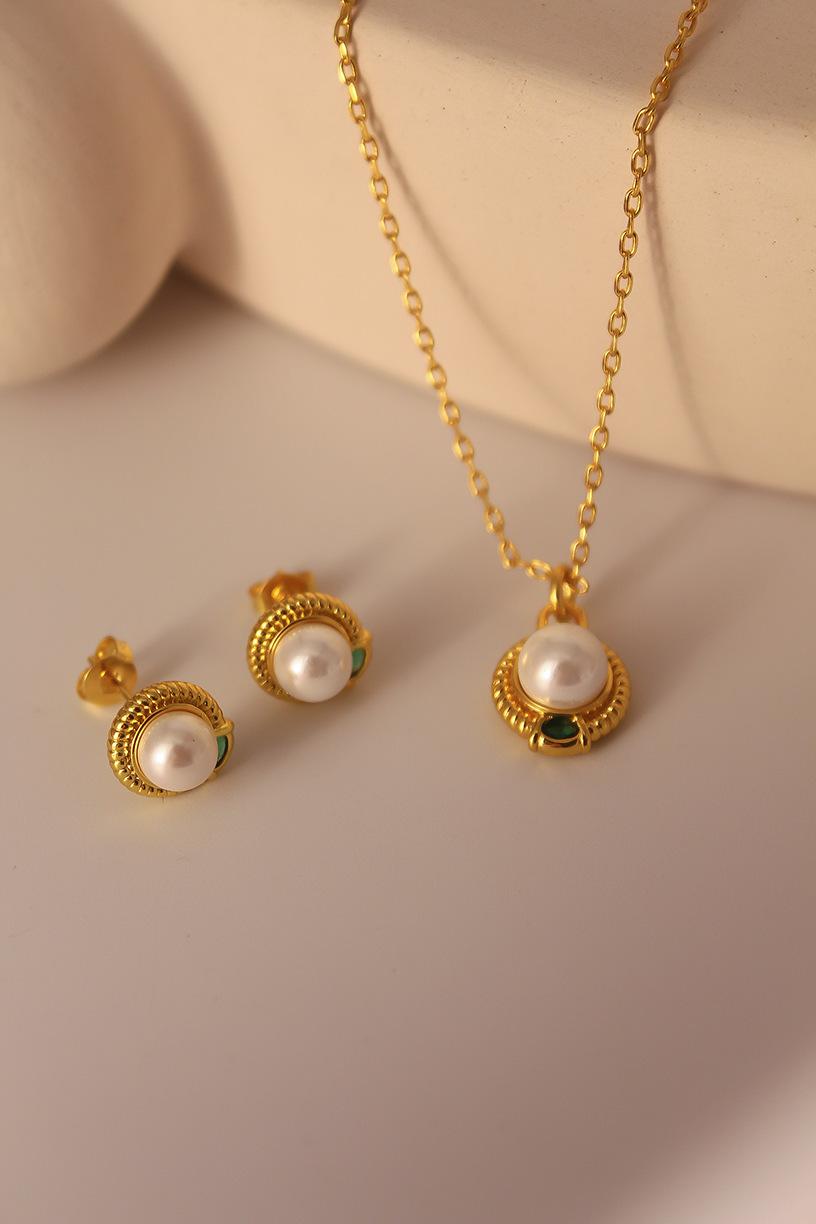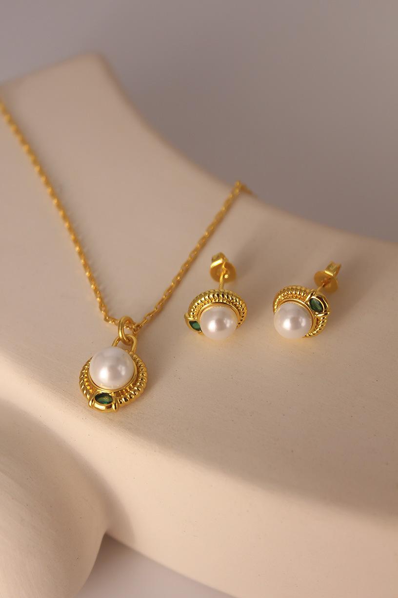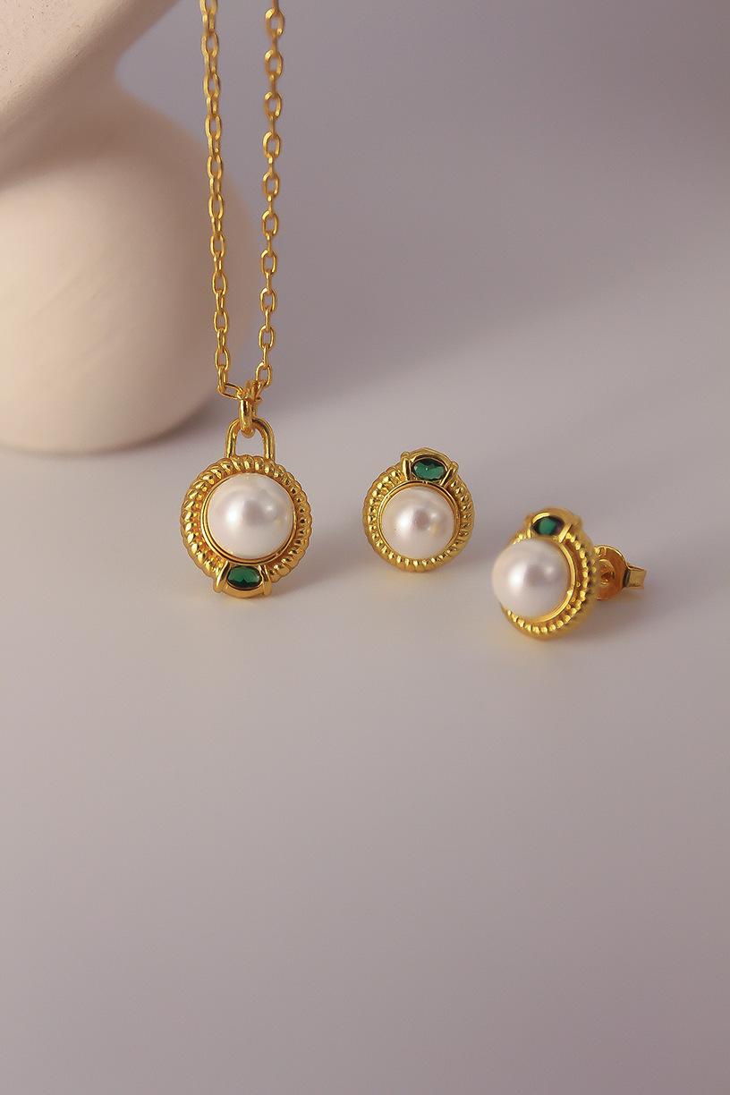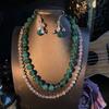 Fantasía Diseño original retro diario nicho collar aretes para mujer oro diamante esmeralda piedra aretes