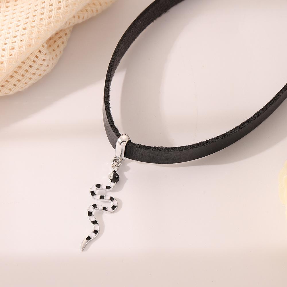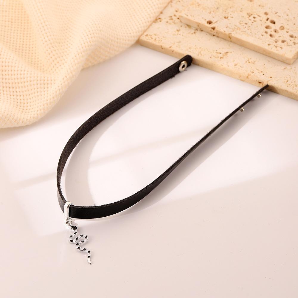 Collar de cuerda de cuero negro con diseño de serpiente, sencillo y versátil, de Amazon Fashion, superventas transfronterizo, venta al por mayor