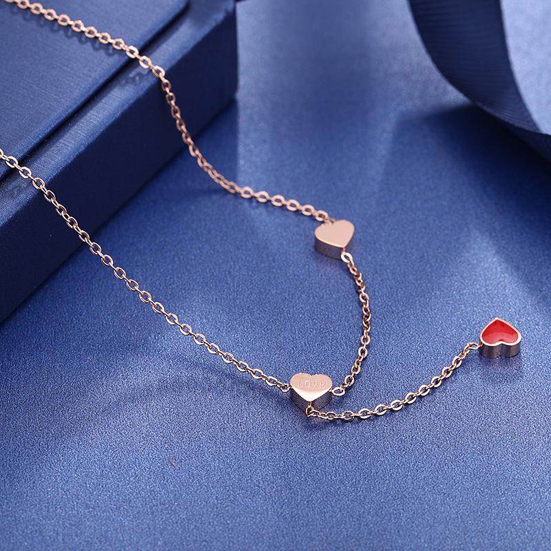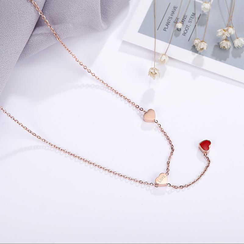 Nuevo collar de acero de titanio con forma de corazón rojo para mujer, mini colgante de cadena de clavícula de oro rosa, joyería de moda al por mayor