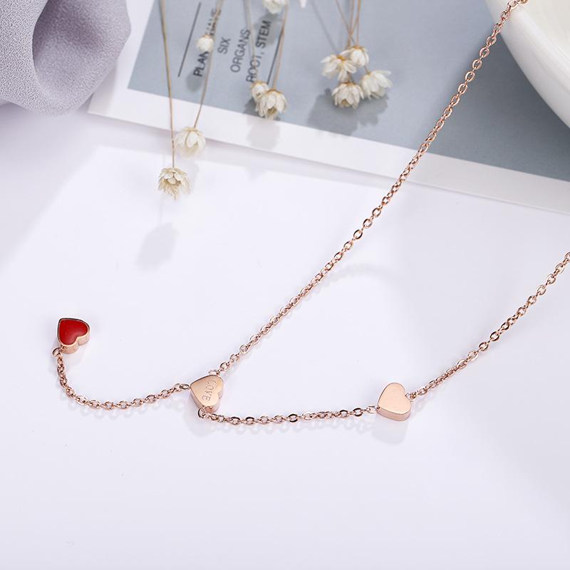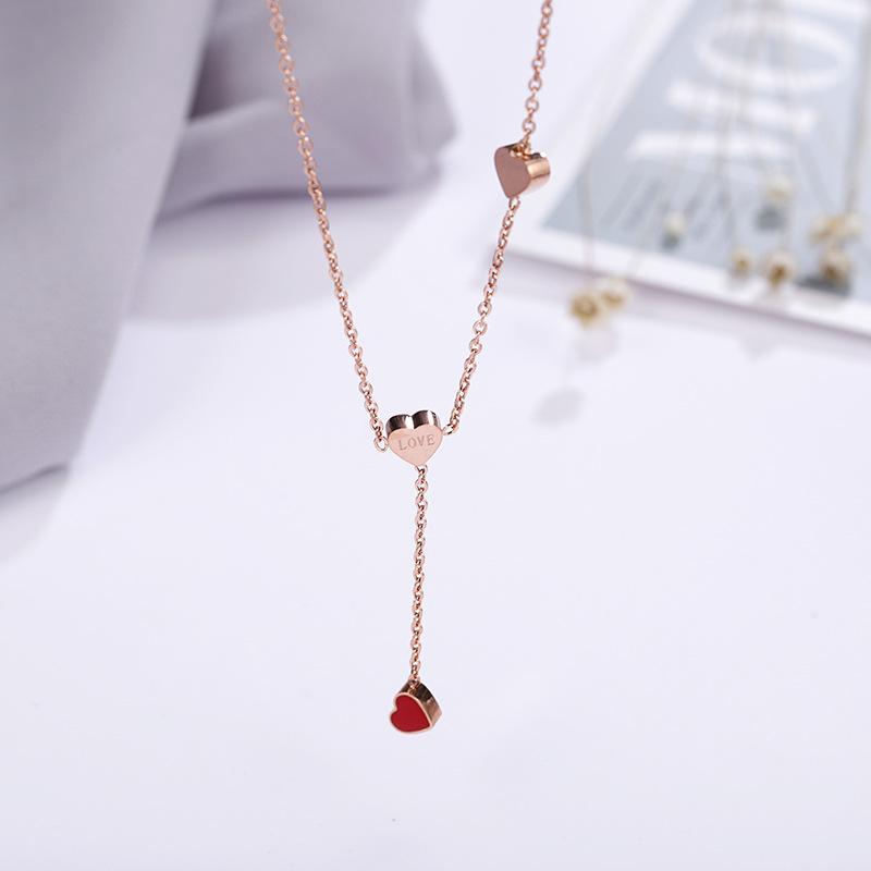 Compra Nuevo collar de acero de titanio con forma de corazón rojo para mujer, mini colgante de cadena de clavícula de oro rosa, joyería de moda al por mayor al por mayor en Joom.pro