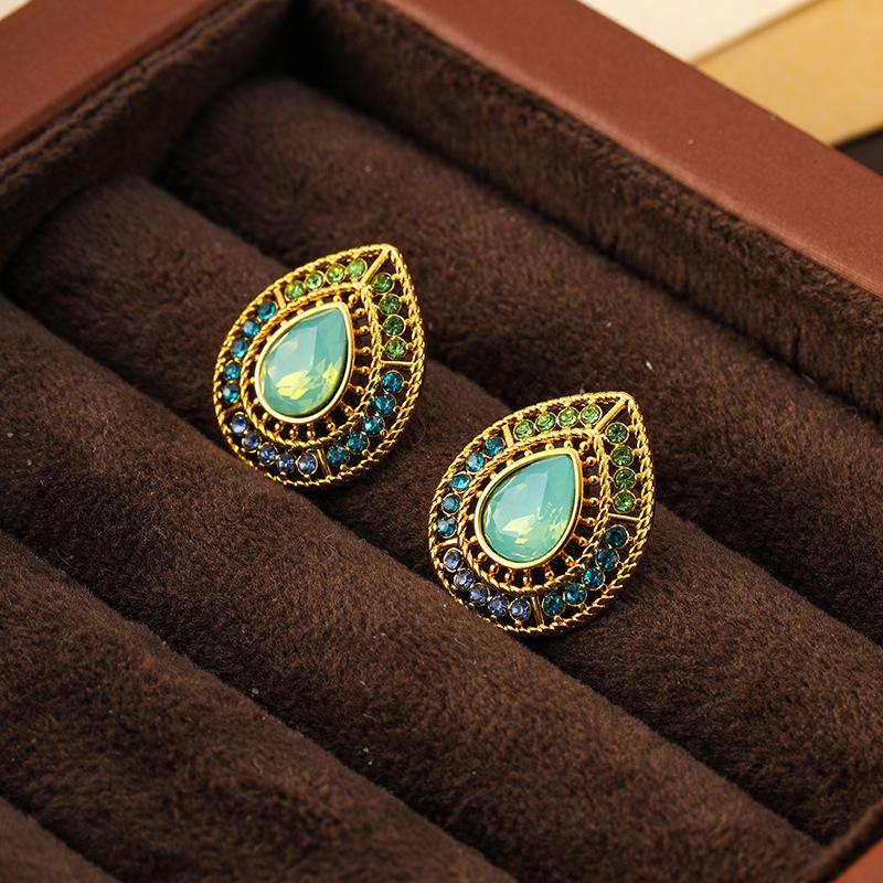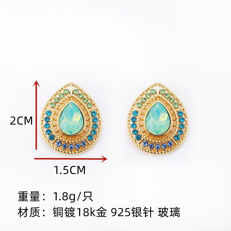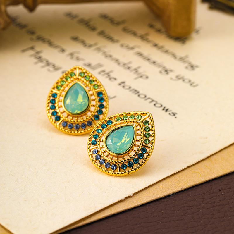 Pendientes de nicho con personalidad y temperamento, originales, estilo retro francés, con incrustaciones de cristal en forma de gota de agua hueca, gemas de colores