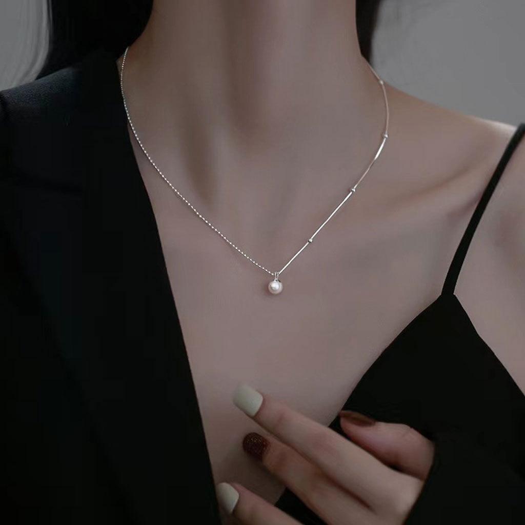 Collar de Cadena de Clavícula de Diseño Nicho de Lujo Ligero Dulce Moda Perla Frijol Plata S925 Xi Gu D0560 para Mujer