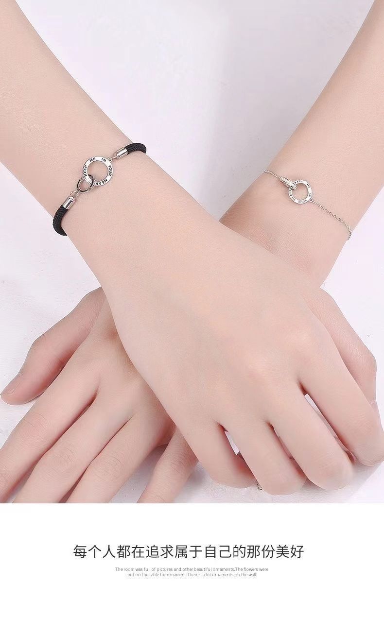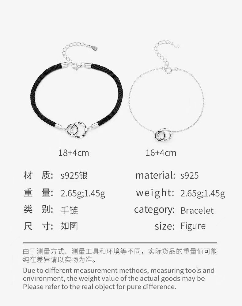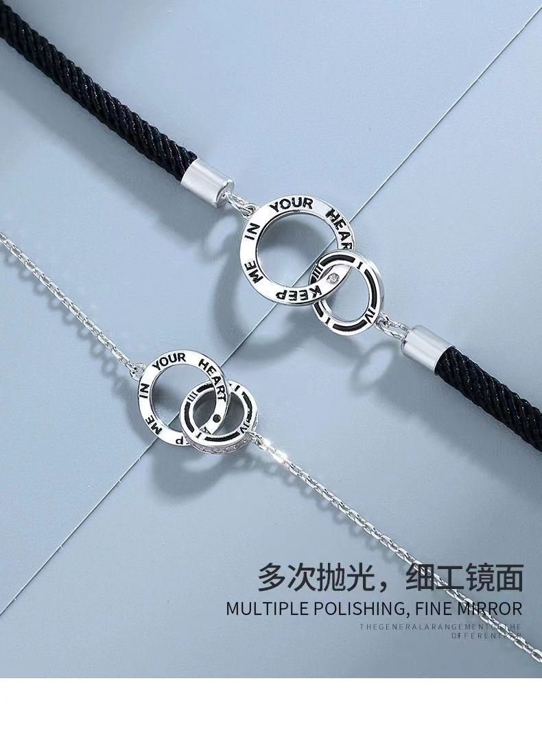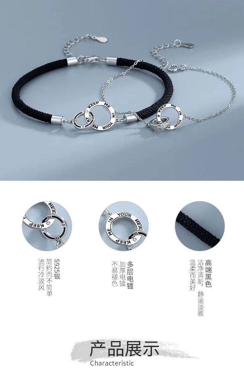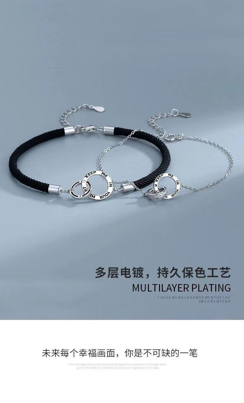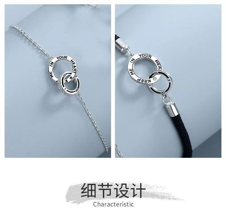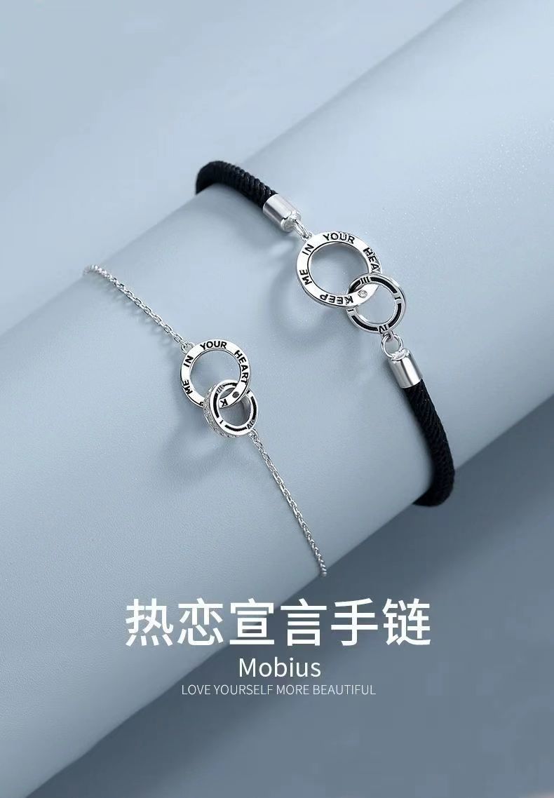 Pulsera de Pareja con Eslabón de Anillo de Möbius Chapada en Plata Cuerda de Mano Nicho Diseño Simple Regalo Conmemorativo para Parejas Venta al por Mayor