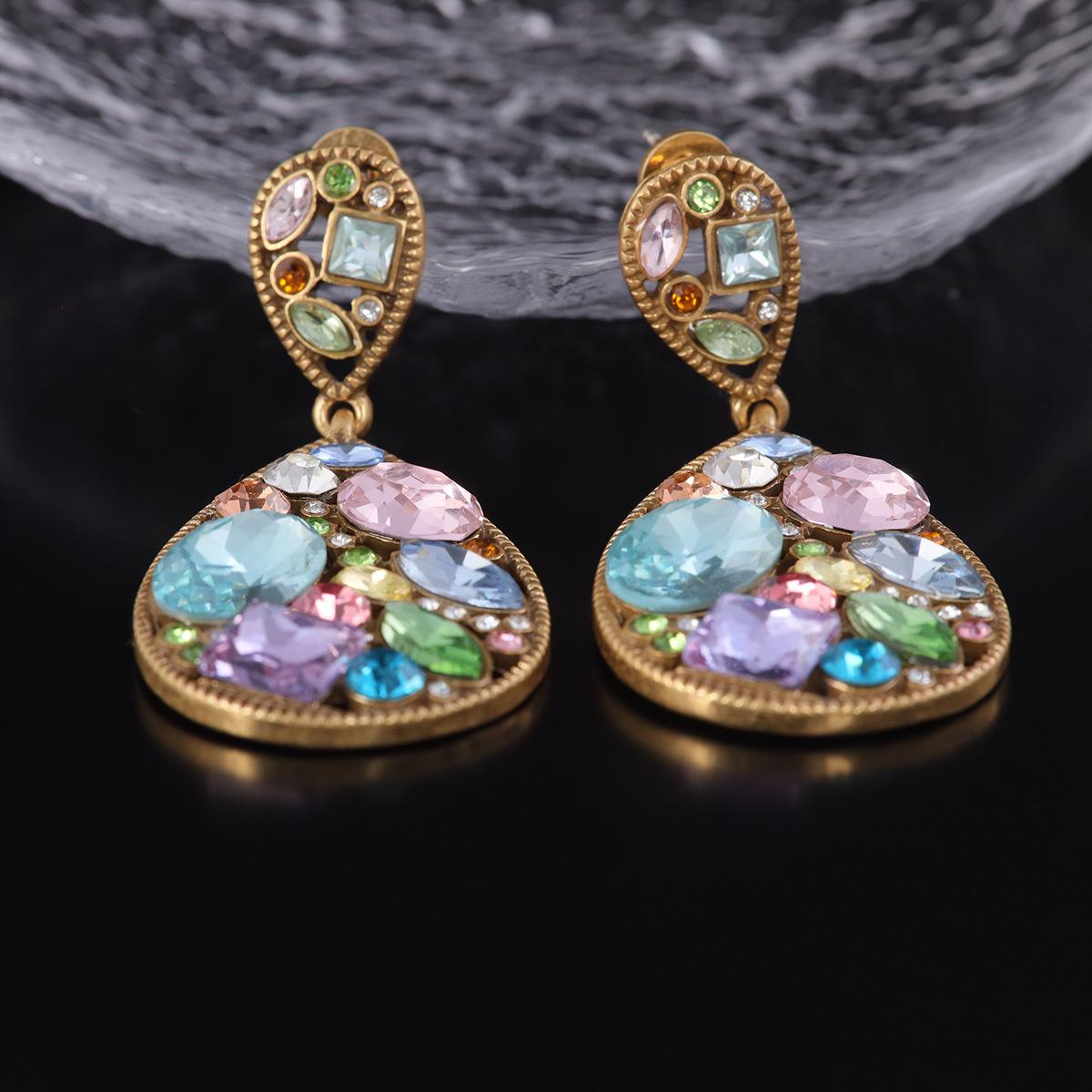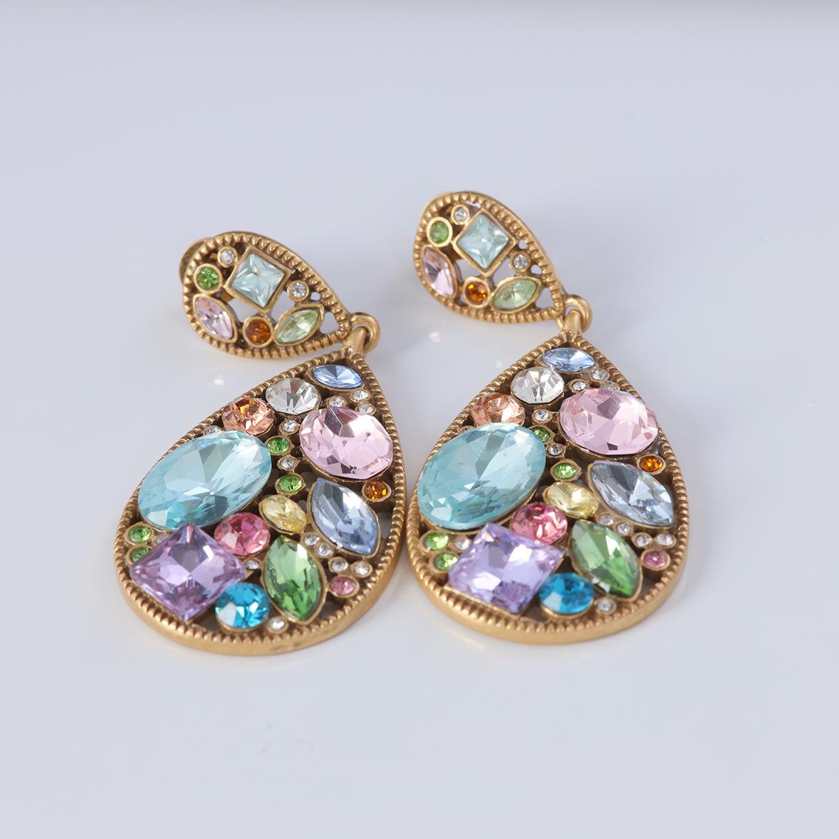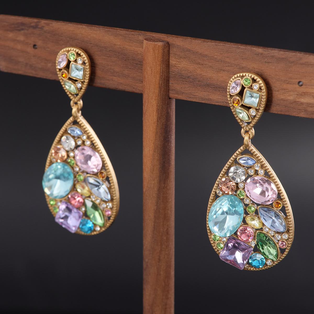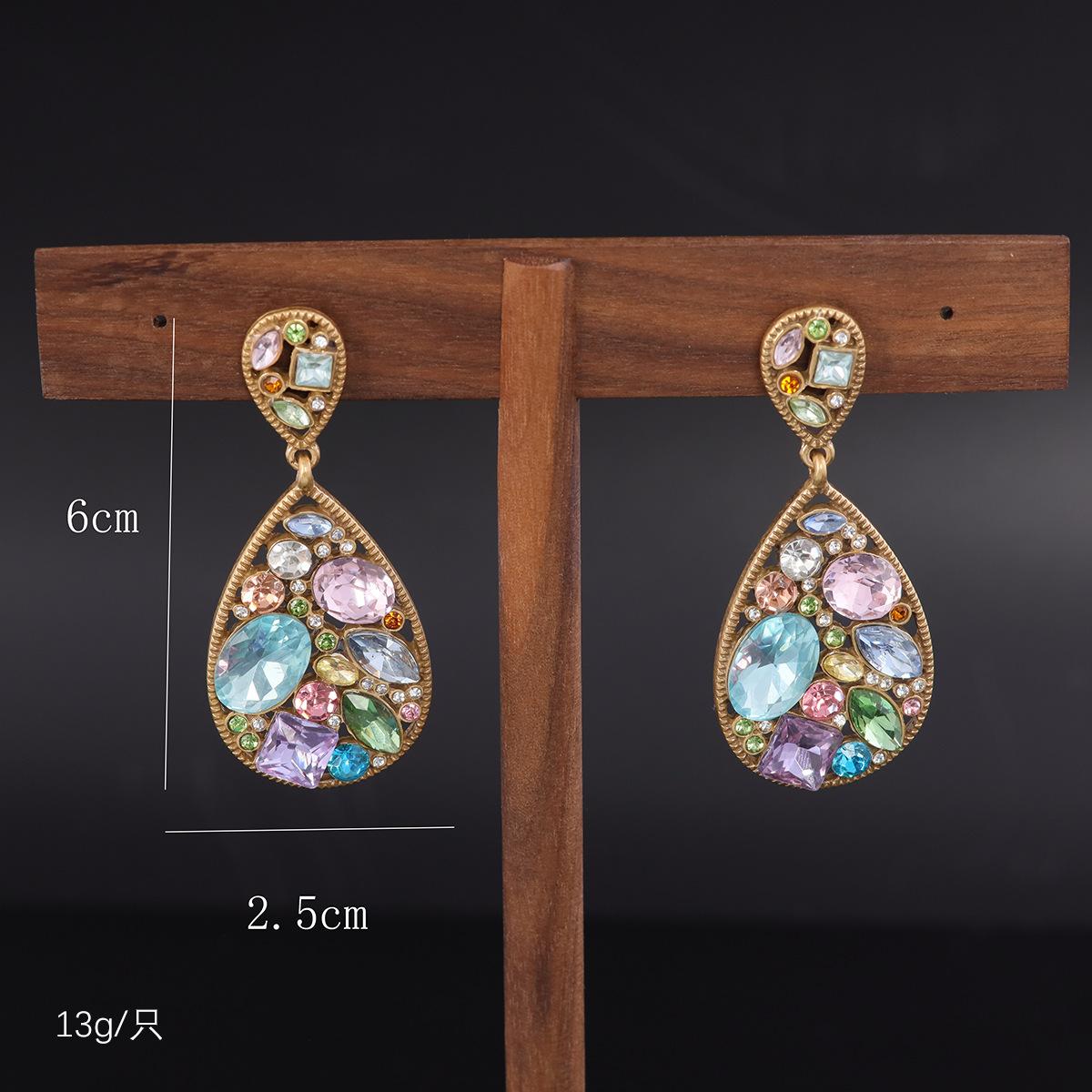 Pendientes colgantes con incrustaciones de diamantes de color desgastado dorado retro personalizados de estilo europeo y americano de la época medieval