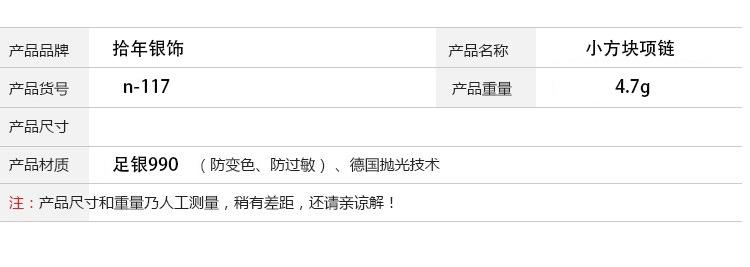Collar con colgante cuadrado de plata de ley 990 para mujer, diseño de nicho simple, cadena de clavícula de alta gama que combina con todo, estilo hip hop moderno y frío.