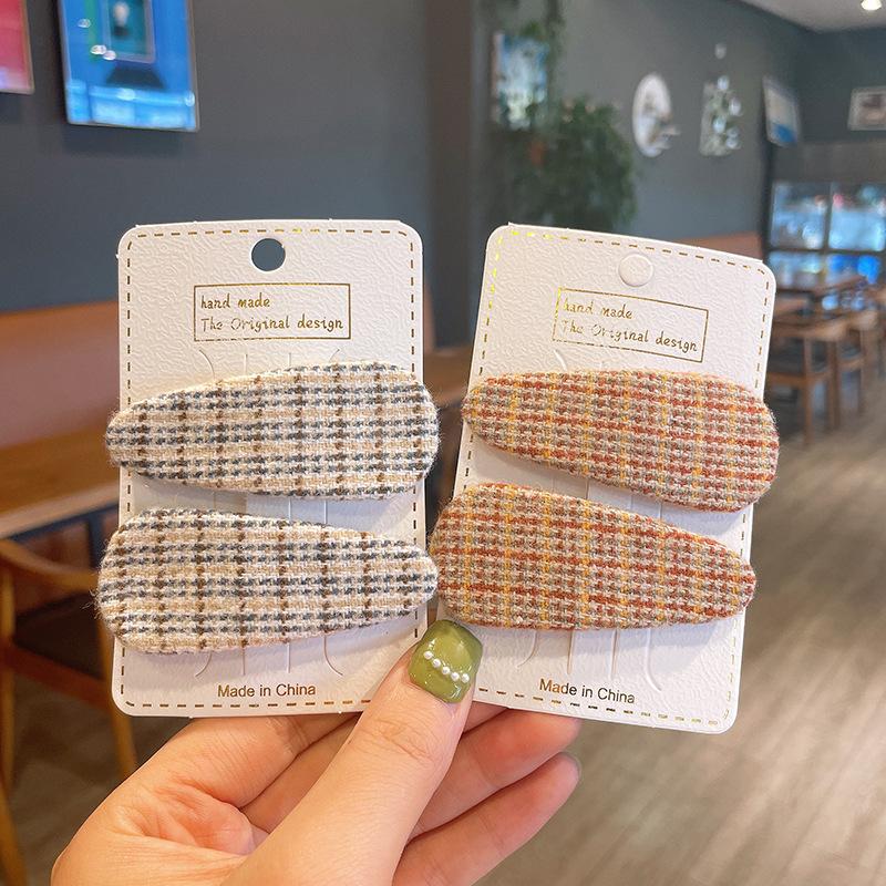 Nuevo Clip para el Cabello Infantil a Cuadros Estilo Coreano de Gota de Agua para Bebé Niña Bebé Tela Par Clip Bb Accesorios para el Cabello Padre-Hijo Clip para Cabello Suelto