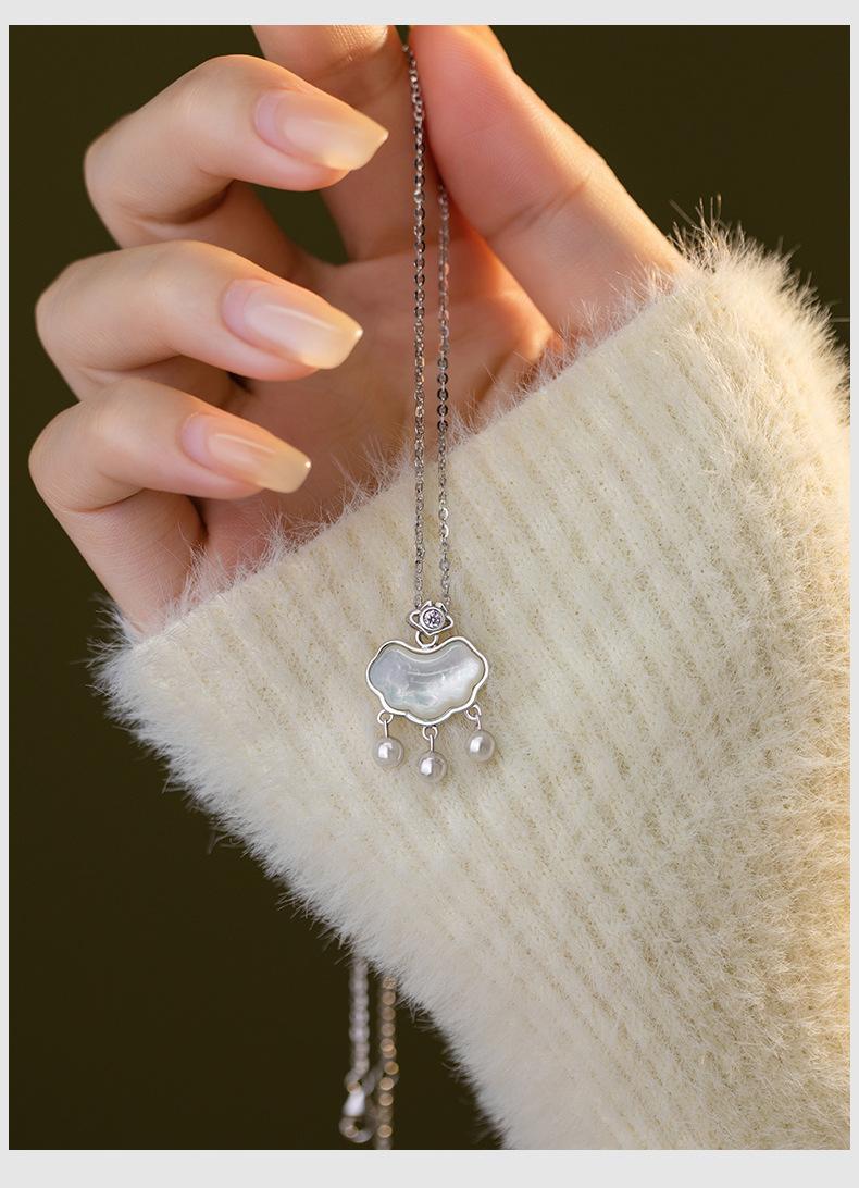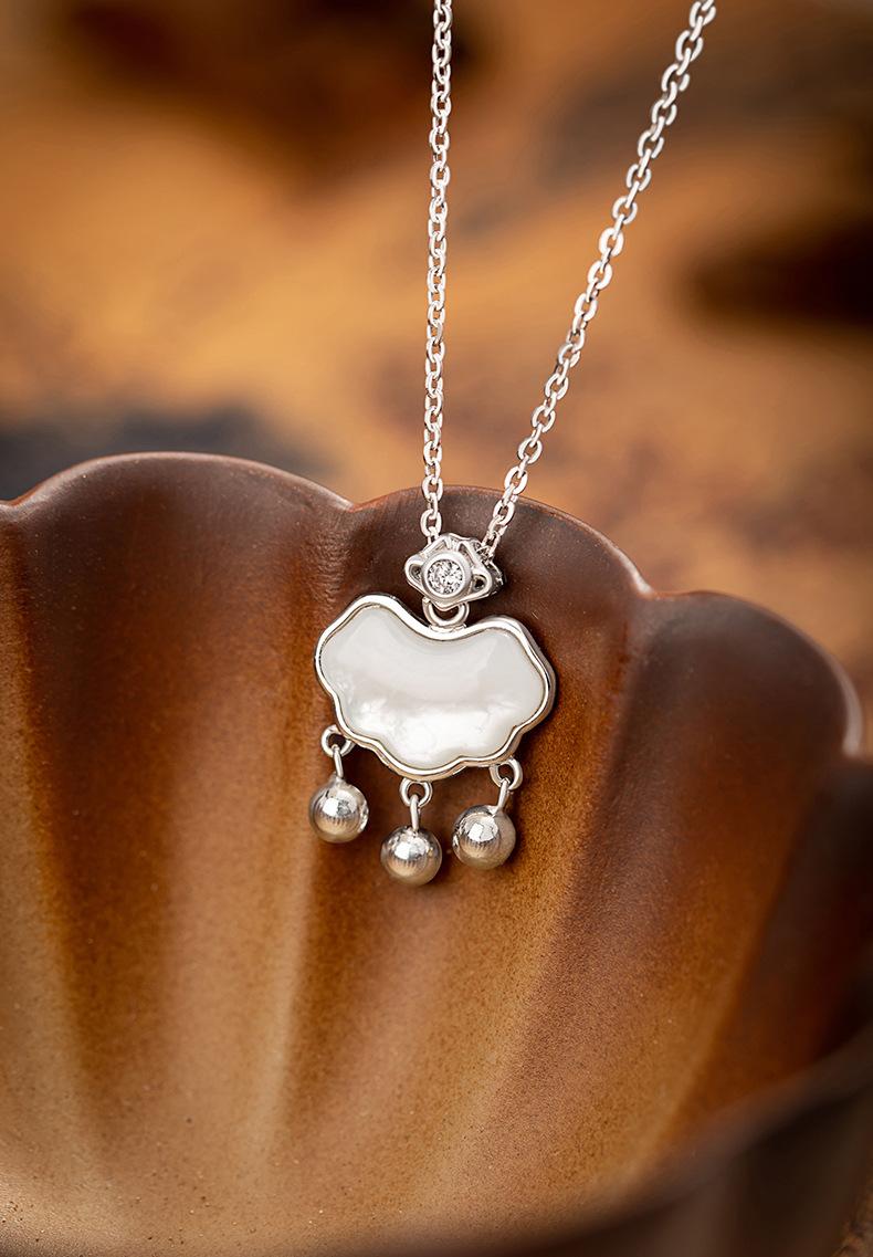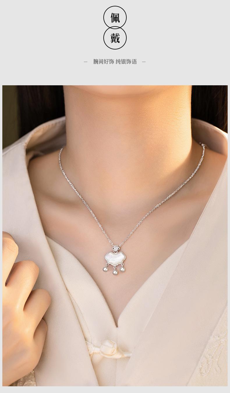 Collar de plata 999 con diseño de gato de la suerte para mujer, cadena de clavícula Ruyi de lujo con colgante de campana de viento.