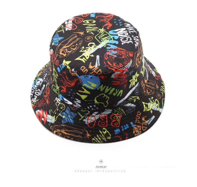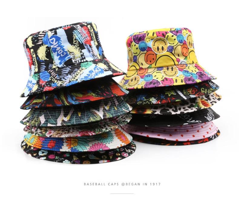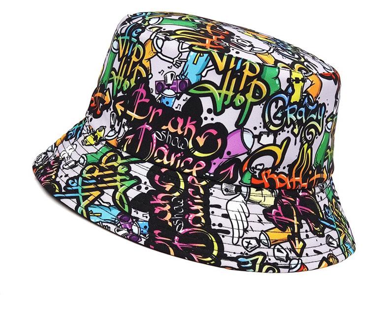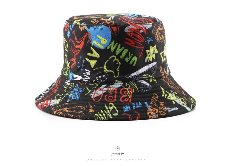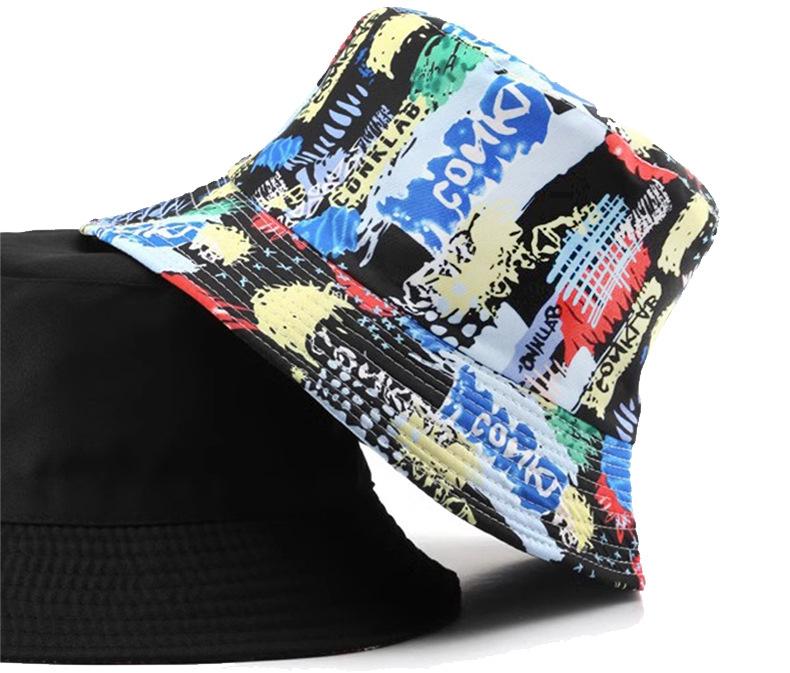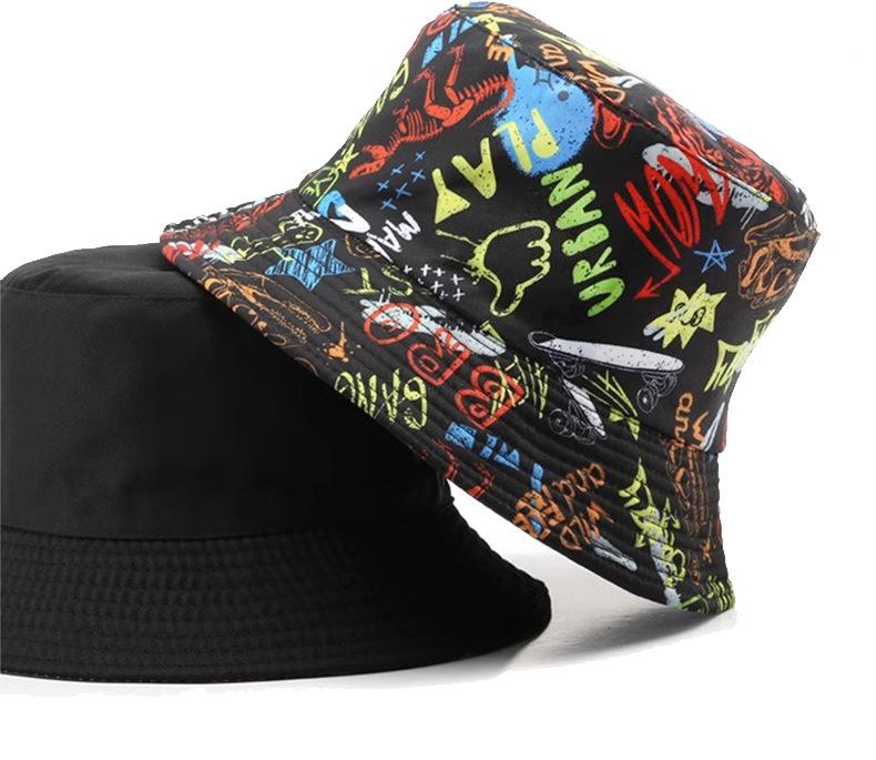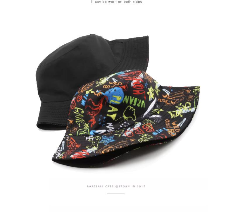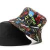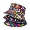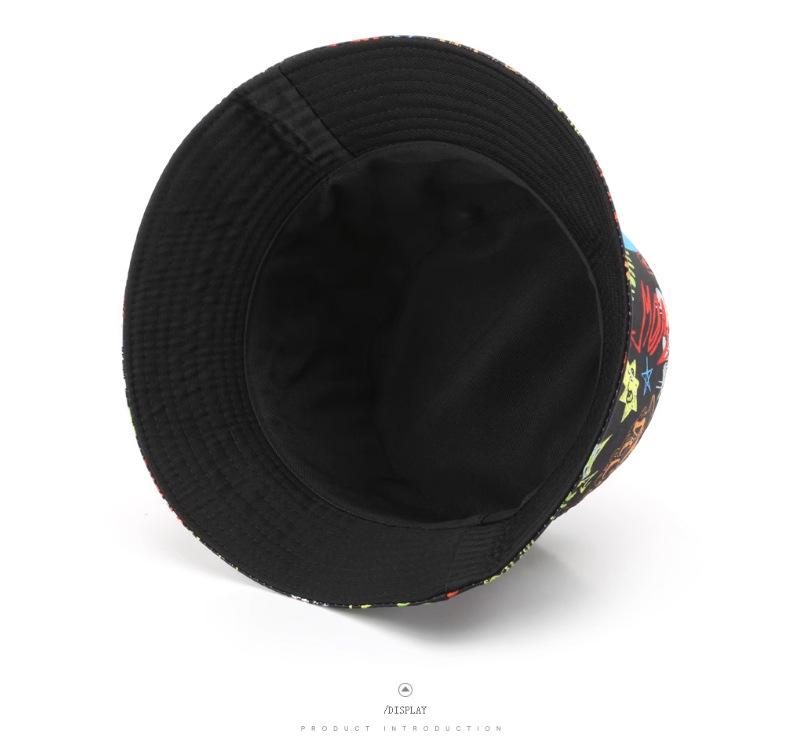 Nuevo Sombrero de Pescador Estampado Transfronterizo Sombrero Graffiti Europeo y Americano Hombres y Mujeres Sombrero para el Sol de Exterior Verano Sombrero de Cubo de Doble Cara a la Moda