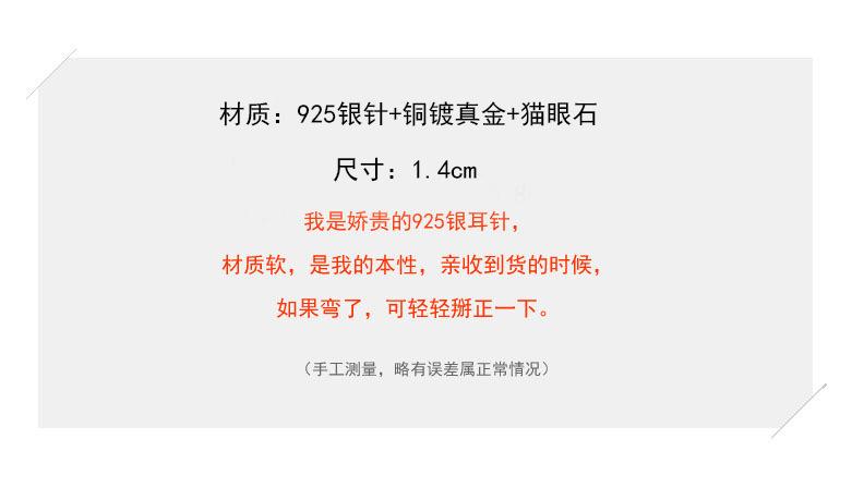 Pendientes de plata S925 con temperamento de aguja y piedra de ojo de gato, pendientes únicos 2024, nuevos y exquisitos pendientes sencillos sin orificio para la oreja, clip para la oreja
