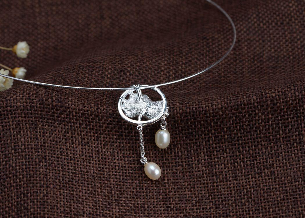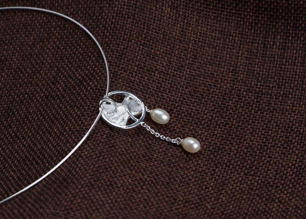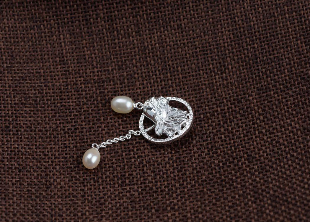 [Nombre del producto] Colgante de hoja de loto con perla en plata S925