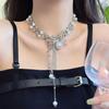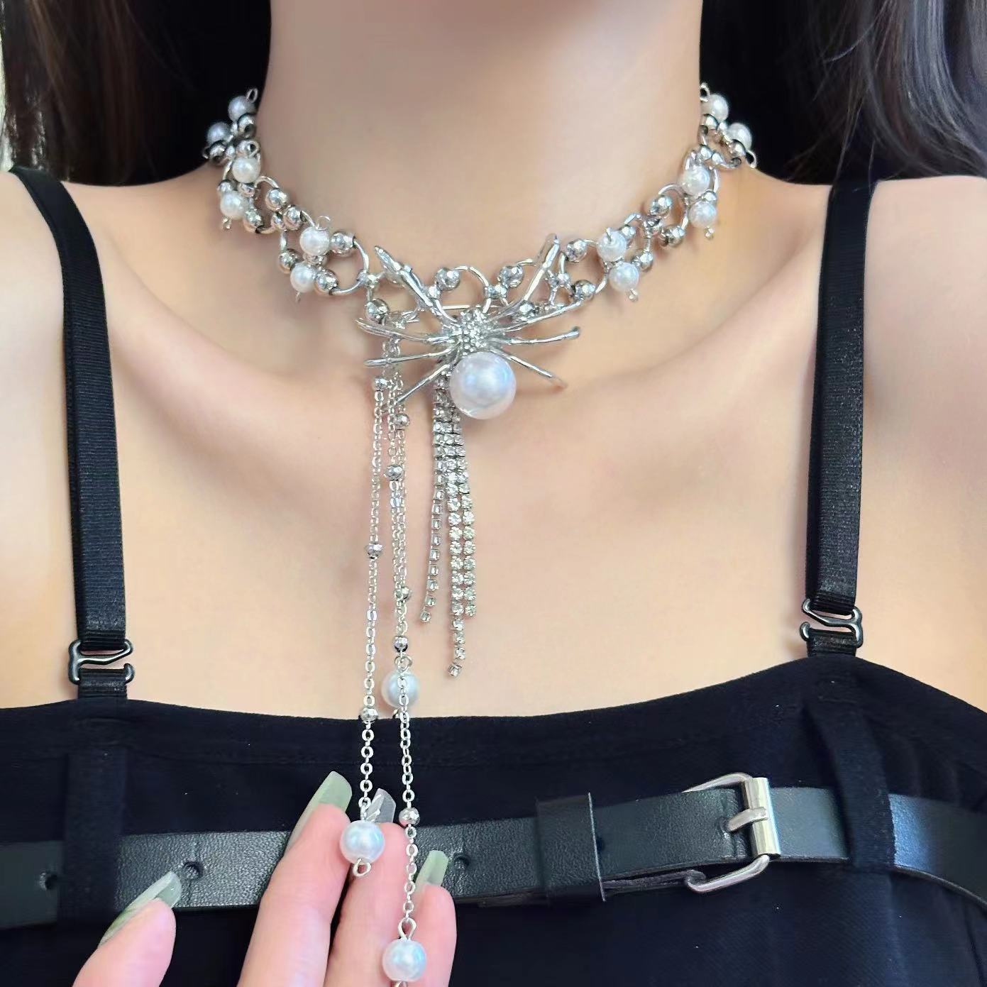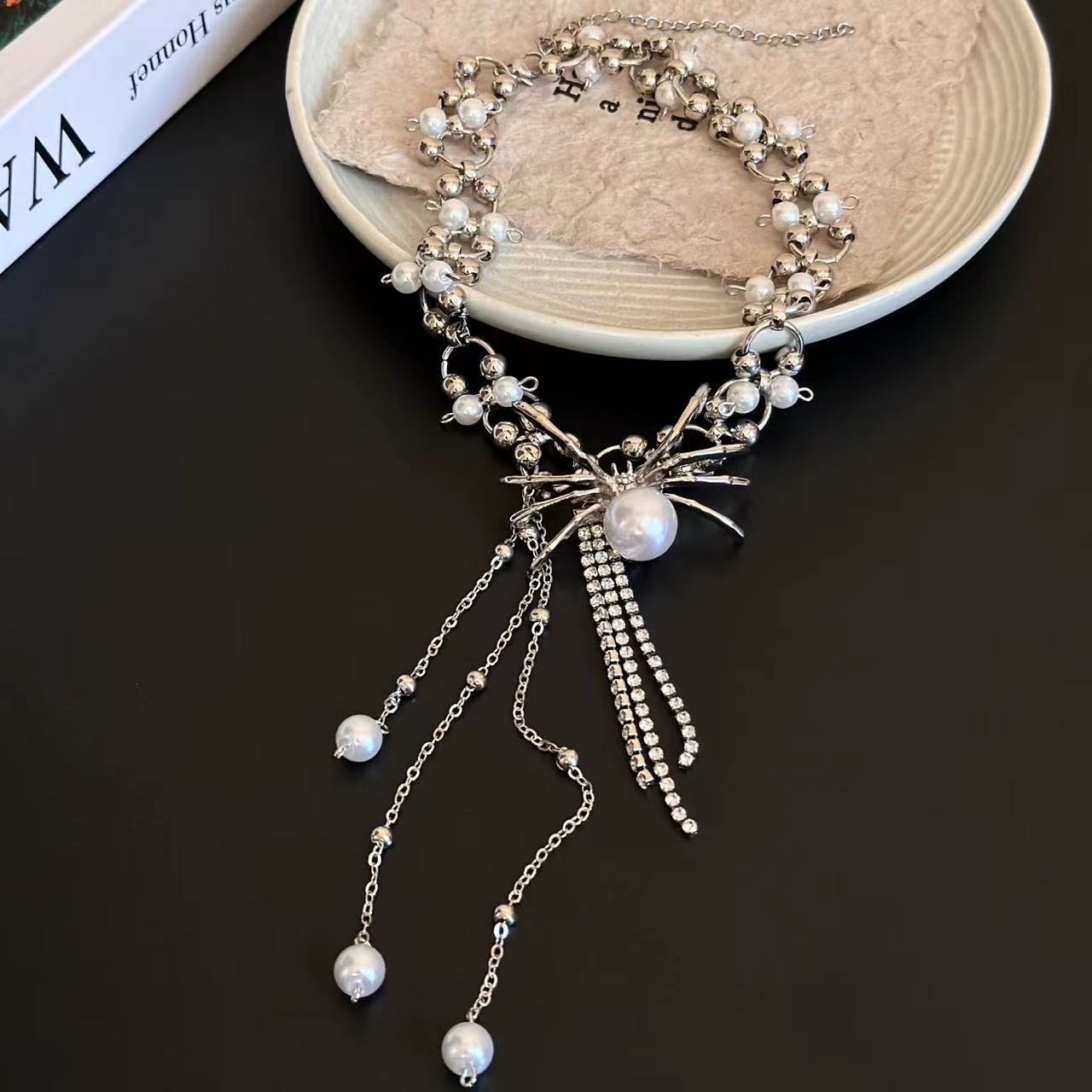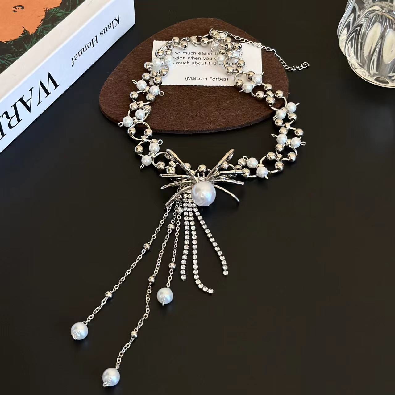Collar de araña antigua con perlas frescas y dulce, ligero, lujoso, de diseño exagerado, gargantilla con cadena de clavícula avanzada.