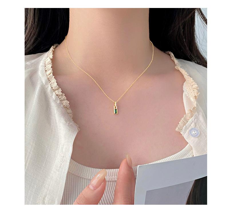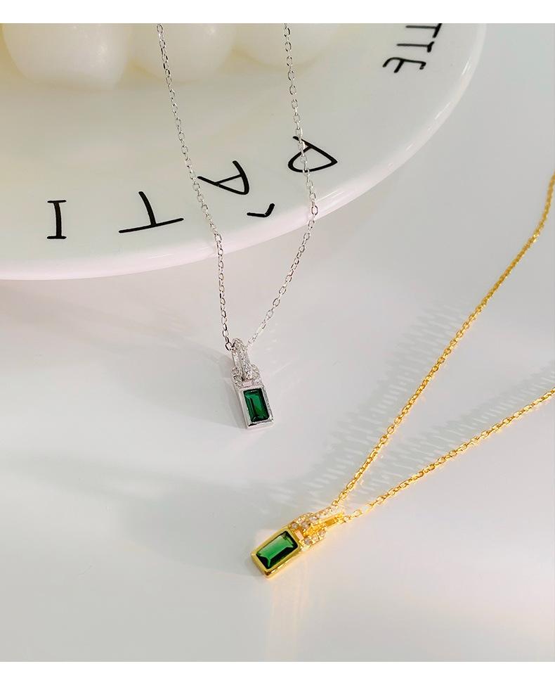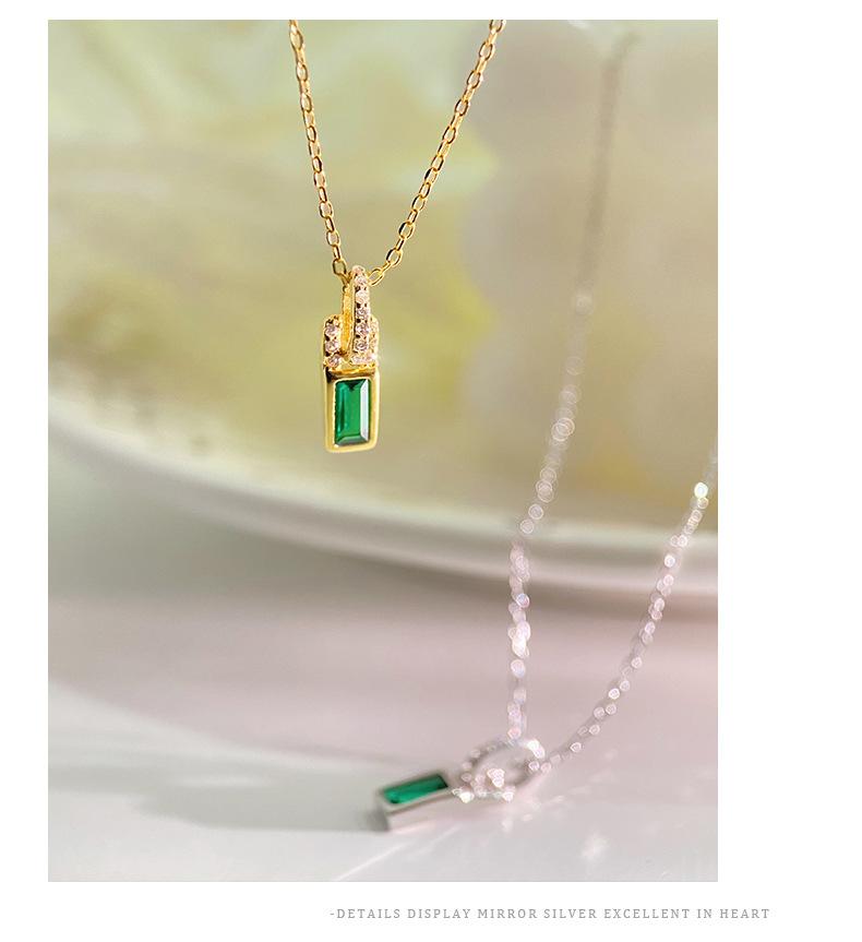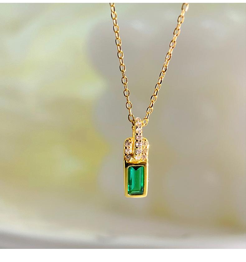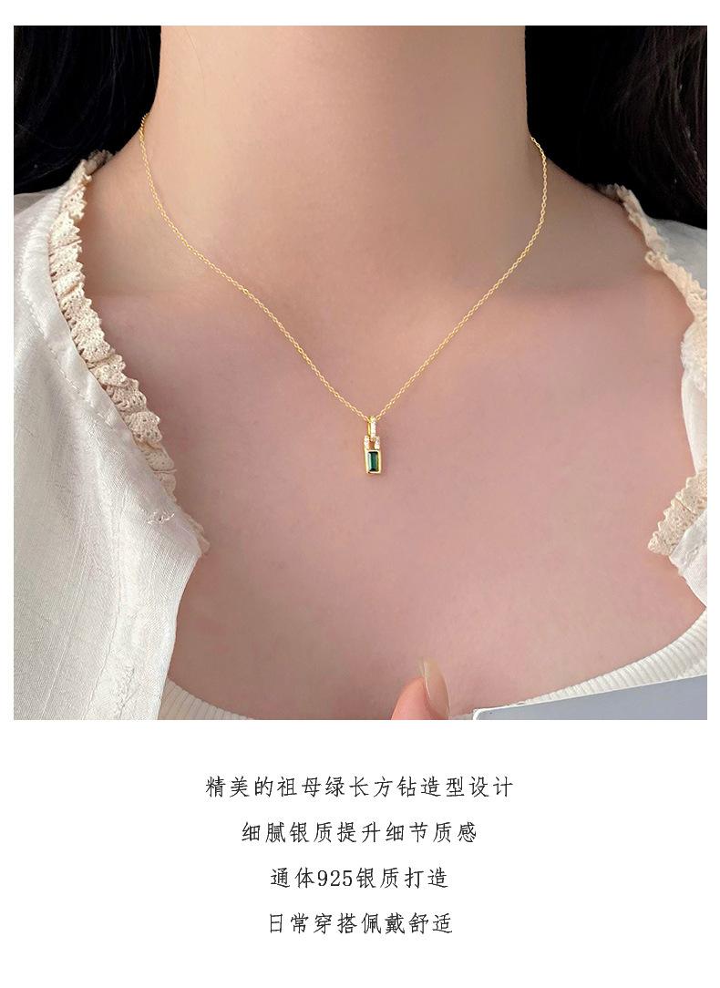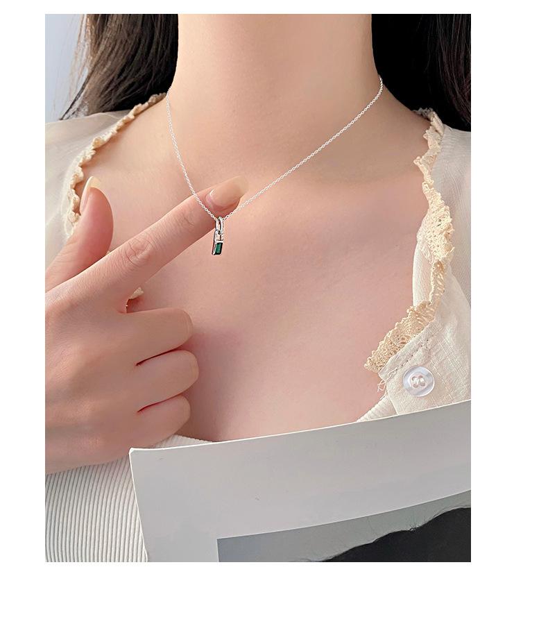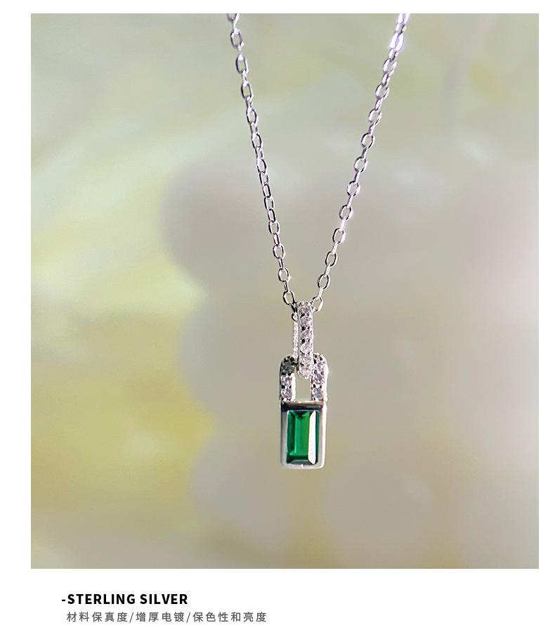 Collar con candado pequeño de diamantes verdes de alta calidad de plata esterlina S925 de Ganjia, cadena de clavícula elegante, ligera y de lujo a la moda, combina con todo. Nuevo