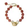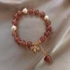 Pulsera de abeja de cristal de fresa con perla de agua dulce, pulsera de moda para mujer, pulsera con diseño de flor de melocotón, pulsera de novia