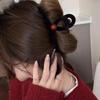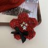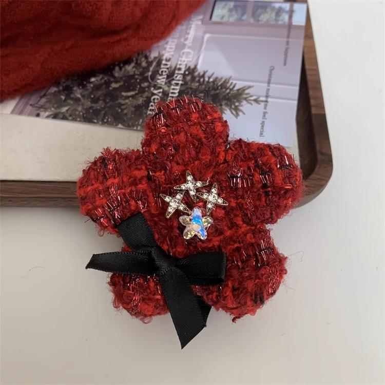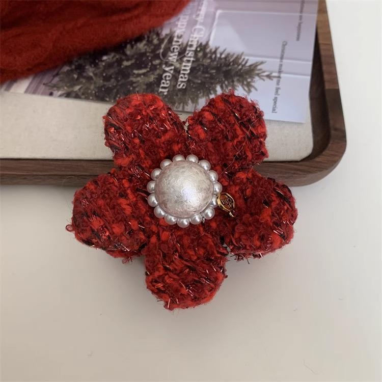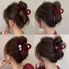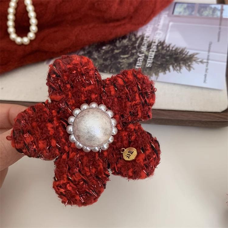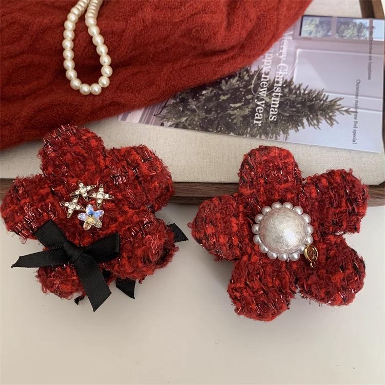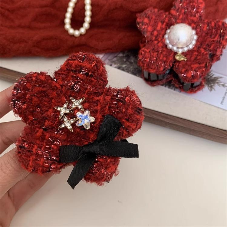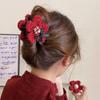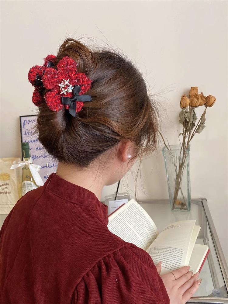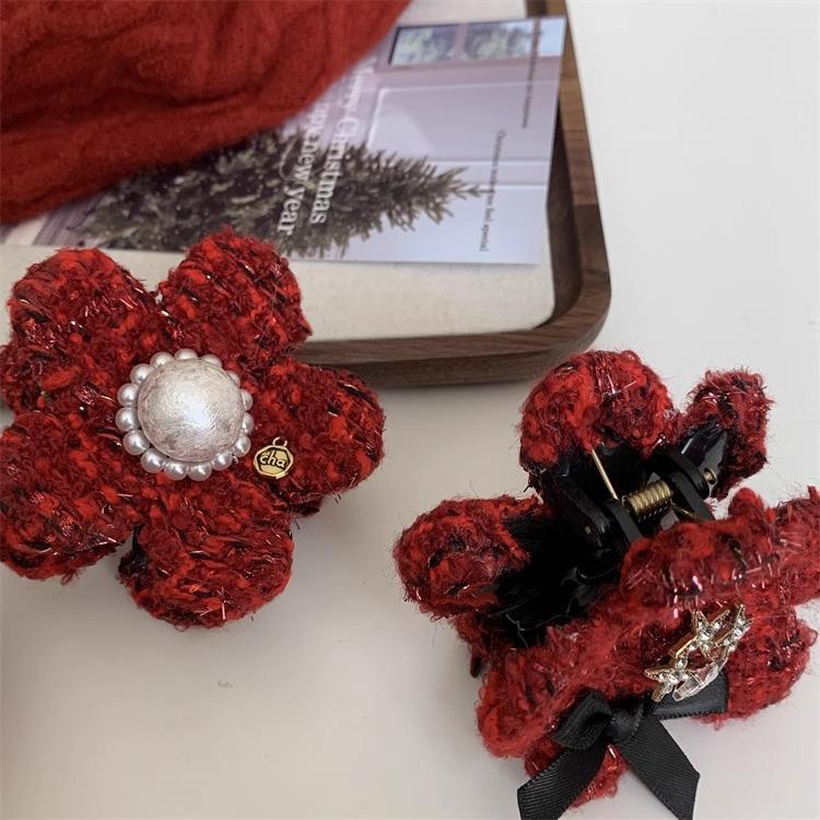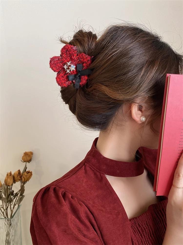 Pinza de pelo de punto con flor roja de Año Nuevo para mujer, temperamento simple, recogido en la espalda, pinza de tiburón, tocado festivo, horquilla para mujer