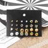 K41 Aretes Cuadrados con Zirconio Estilo Coreano Montados en Tarjeta 12 Pares Aretes de Diamante con Corazón de Durazno Aretes de Traje
