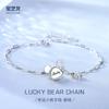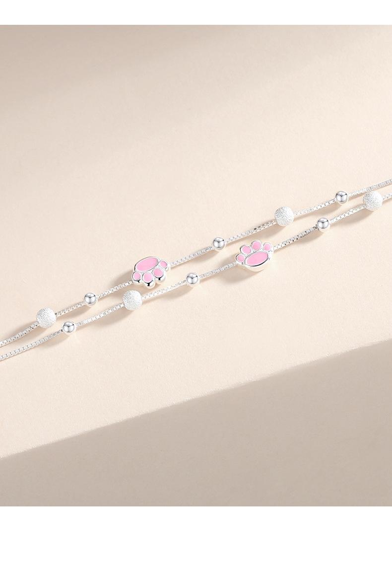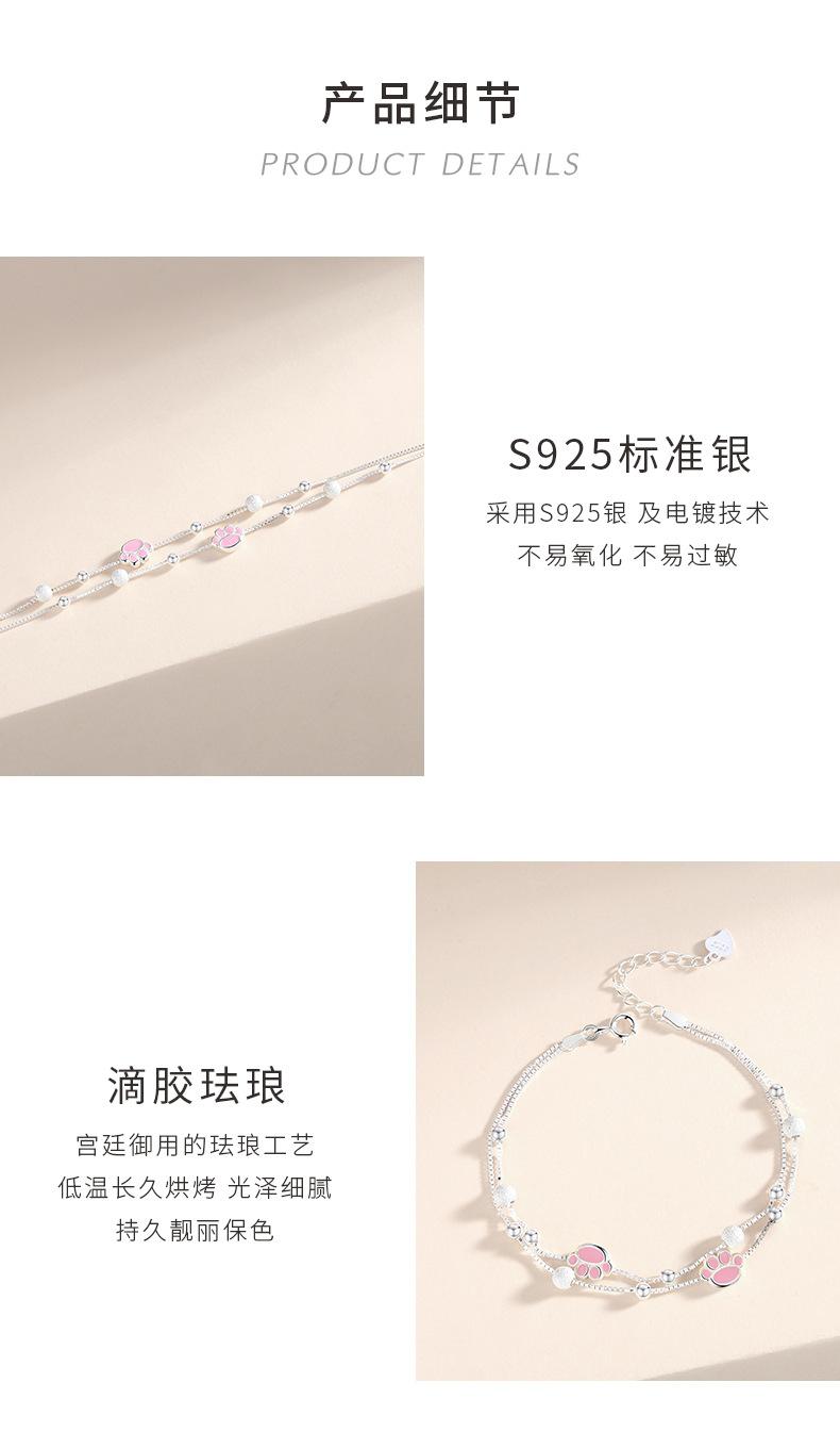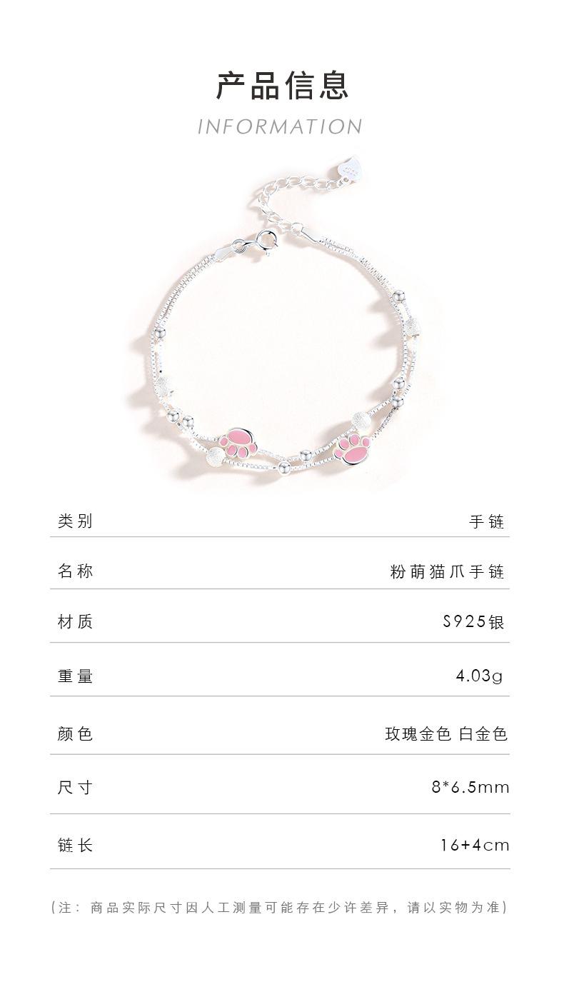 Pulsera de Plata Esterlina S925 con Garra de Gato Rosa para Mujer Pequeña Fresca Bosque Cadena de Caja Doble Capa Pulsera de Cuentas de Bola Corazón de Niña Regalo