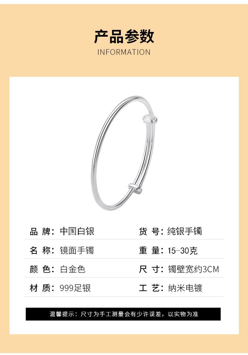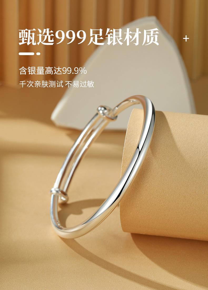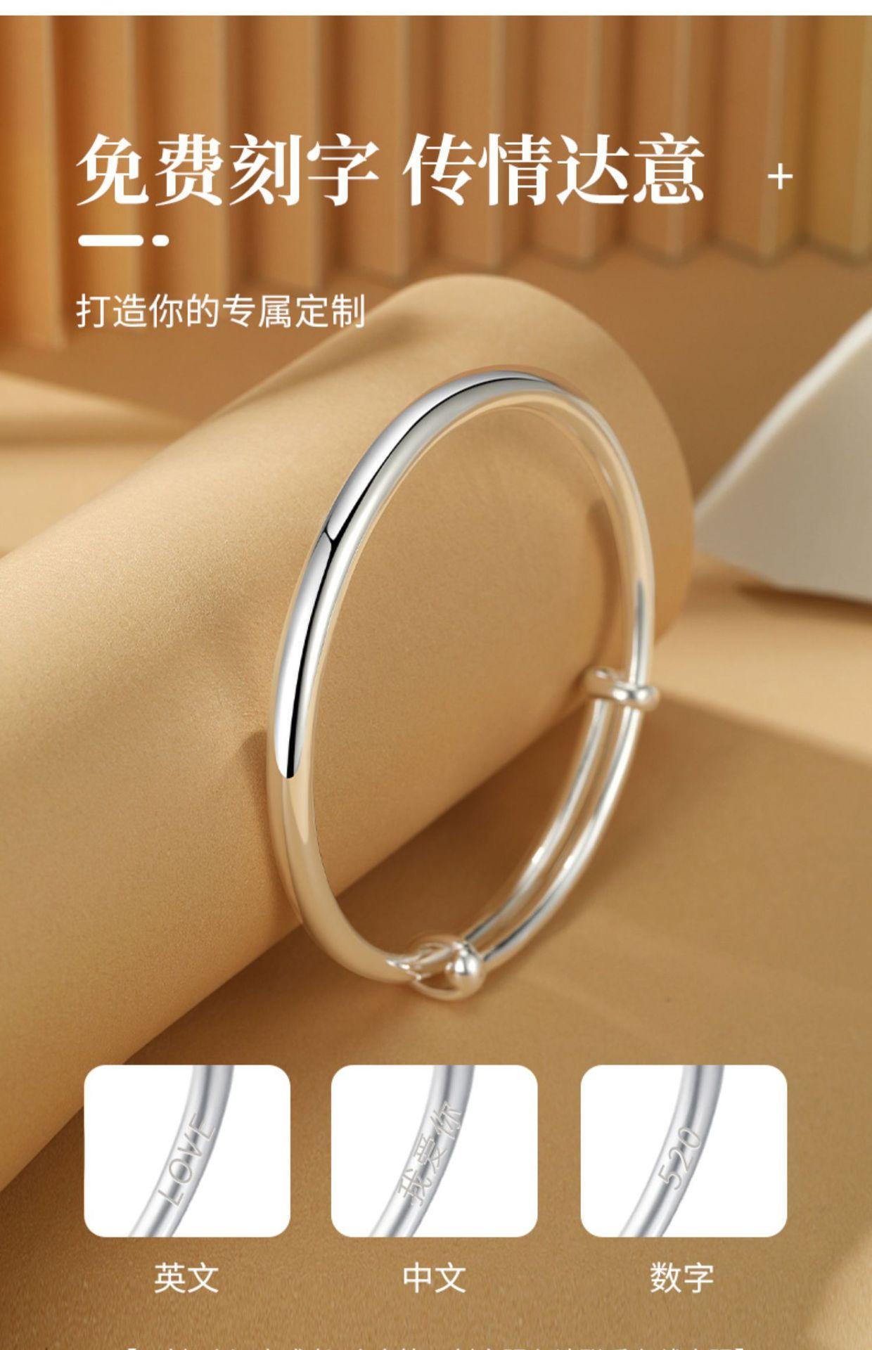 Pulsera de plata brillante S999 para mujer, sólida, sencilla, ajustable, regalo de aniversario, joyería de plata.