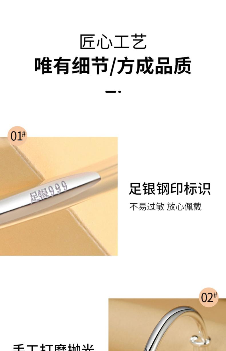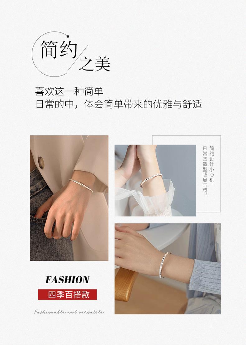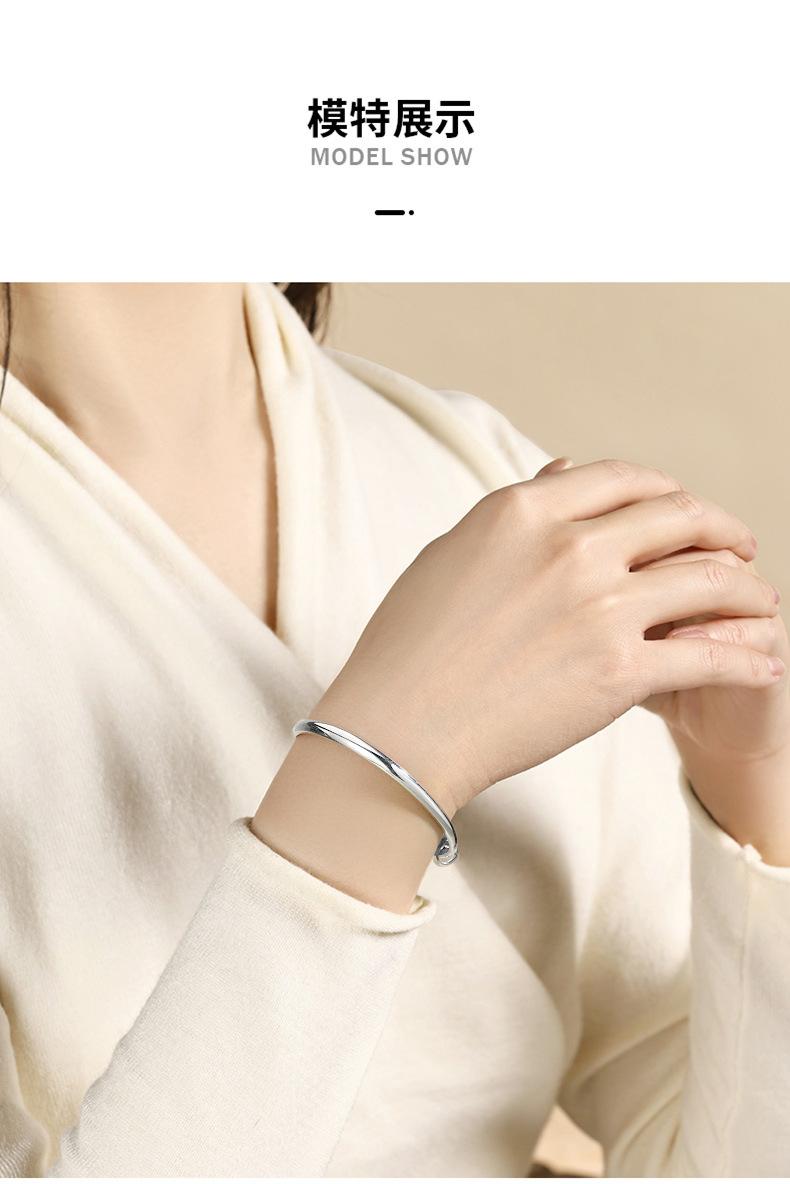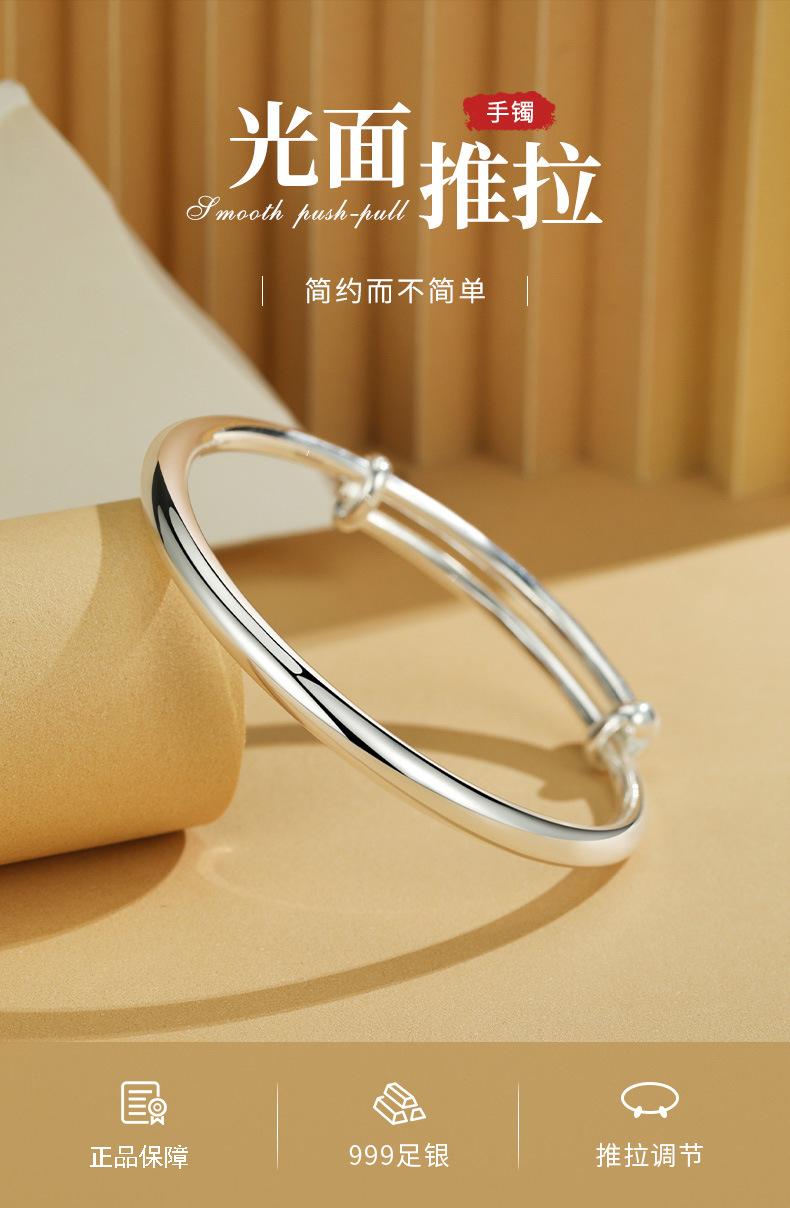 Pulsera de plata brillante S999 para mujer, sólida, sencilla, ajustable, regalo de aniversario, joyería de plata.