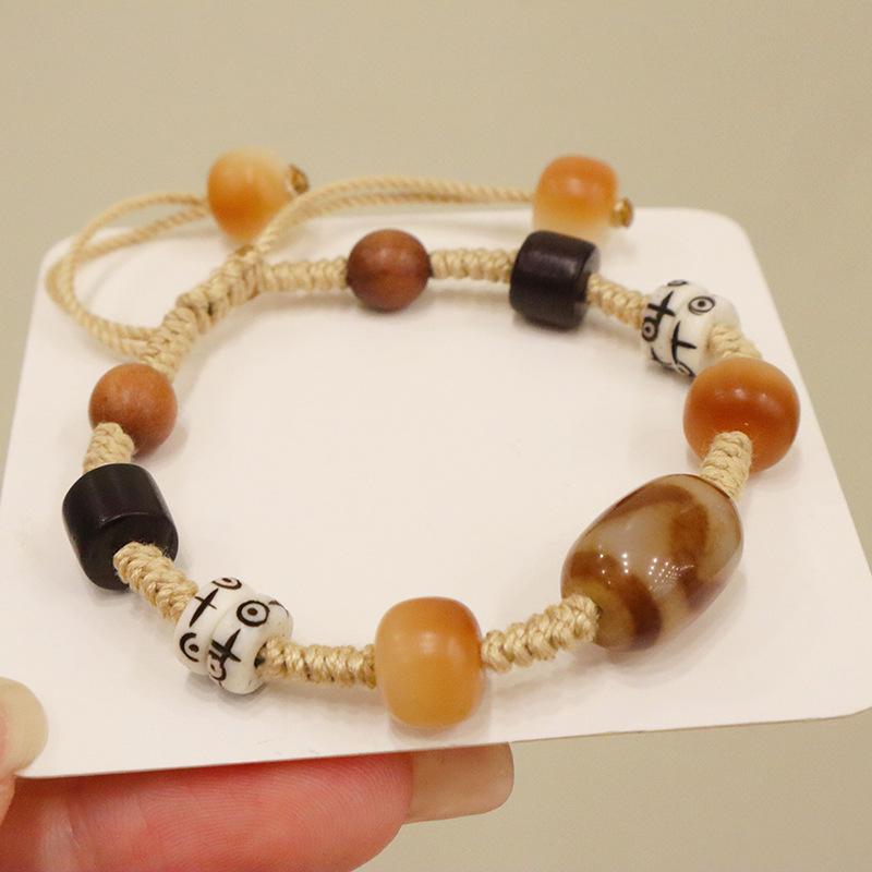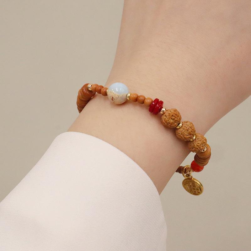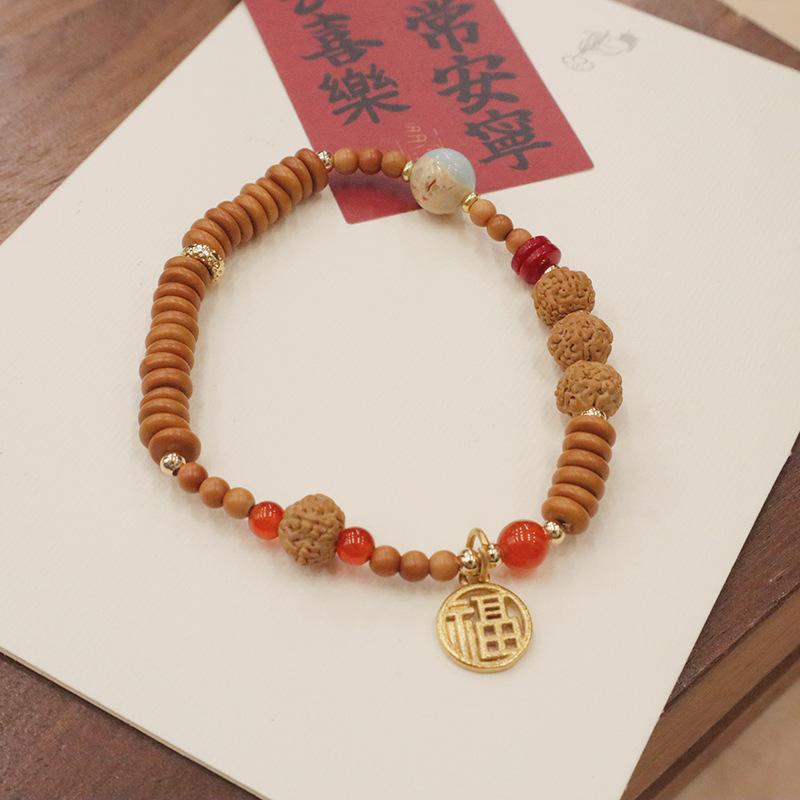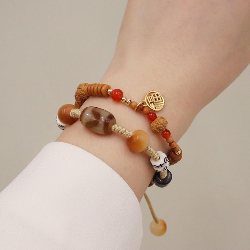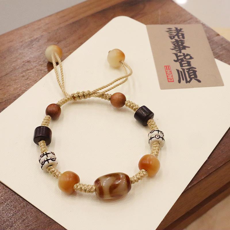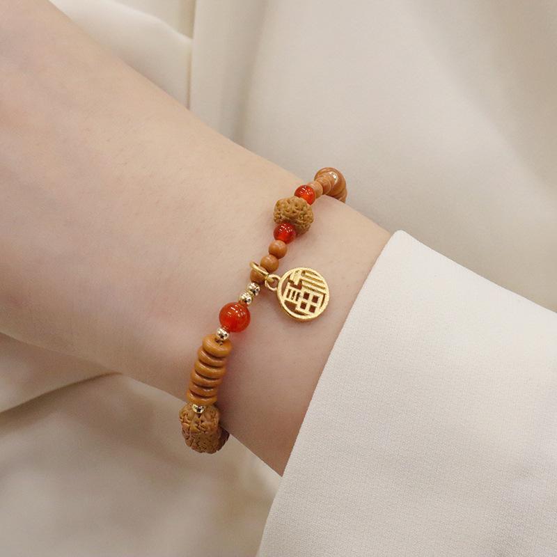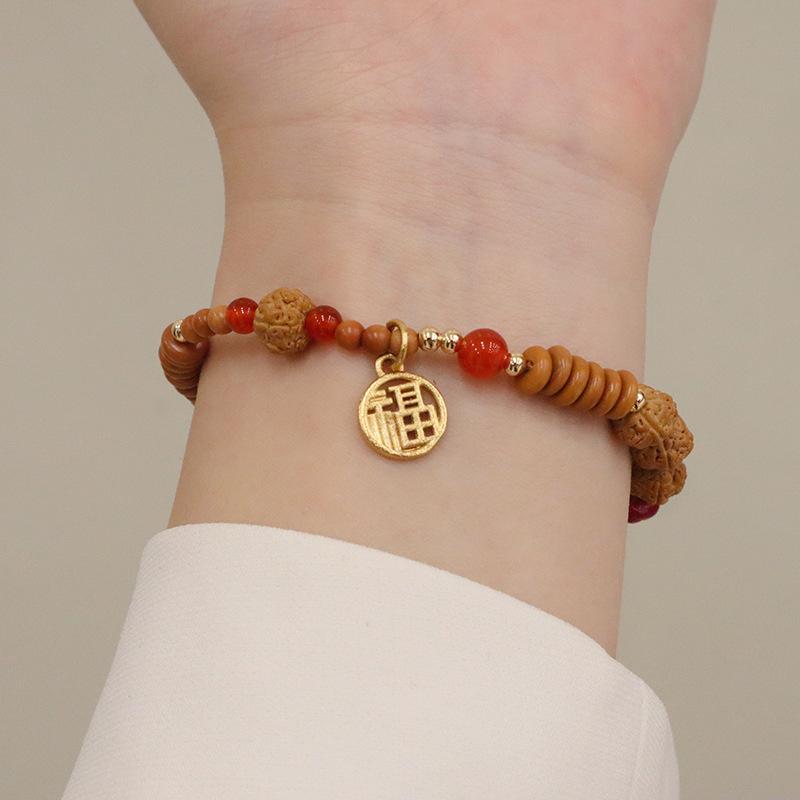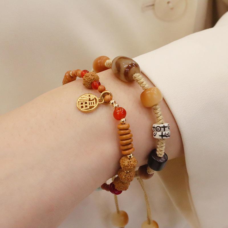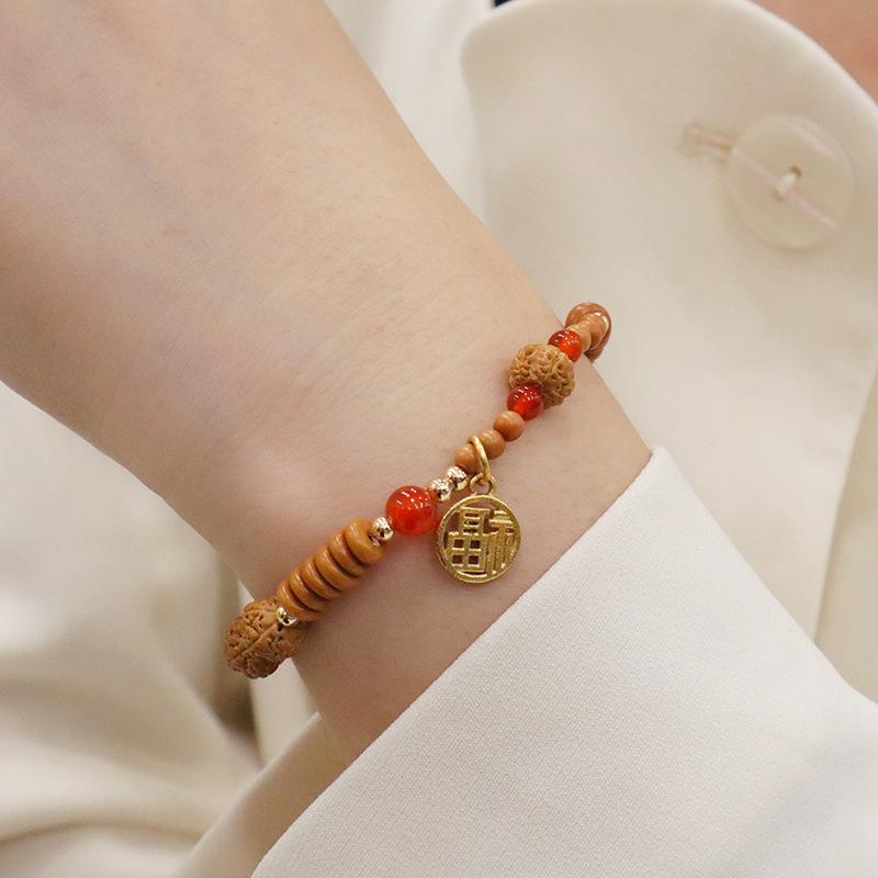 Natural olive Shoushan stone lucky bracelet, Natural agate Tianzhu Bodhi hand rope