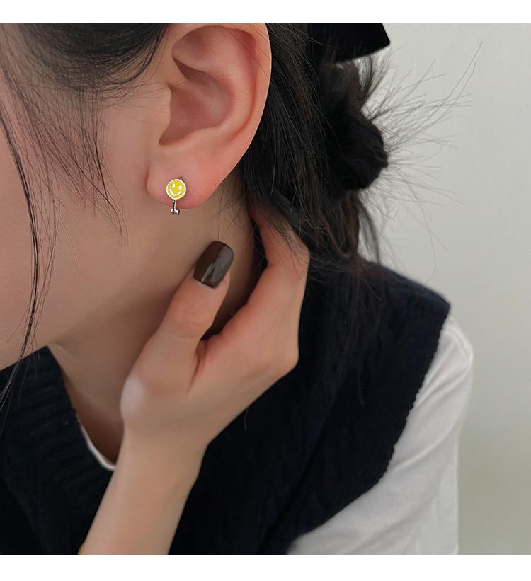 Pendientes Tie Di, diseño de nicho 2022, nuevos pendientes de plata de moda, pendientes de temperamento femenino con carita sonriente.