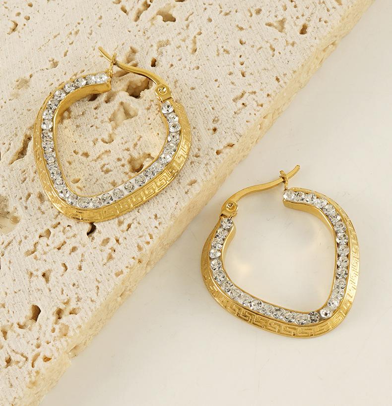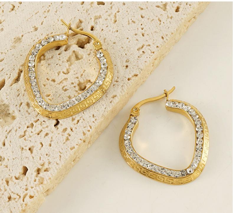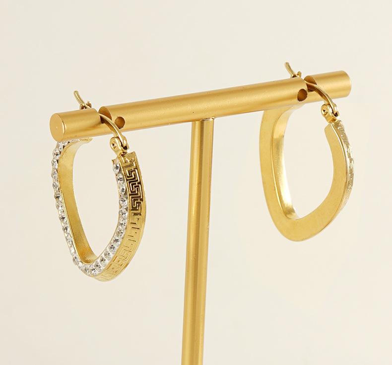 Pendientes de acero inoxidable con diseño de la Gran Muralla, estilo europeo y americano, chapados en oro de 18 quilates y diamantes, para mujer.