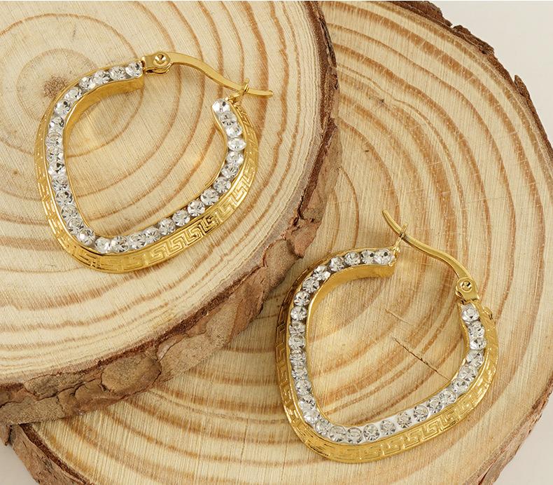 Pendientes de acero inoxidable con incrustaciones de circonitas, de moda europea y americana, con incrustaciones de diamantes y acero de titanio en oro de 18 quilates, al por mayor