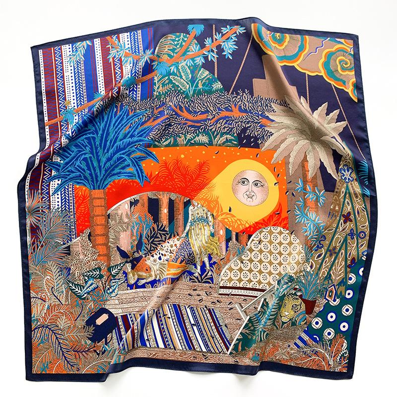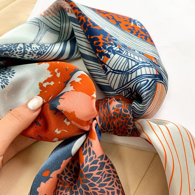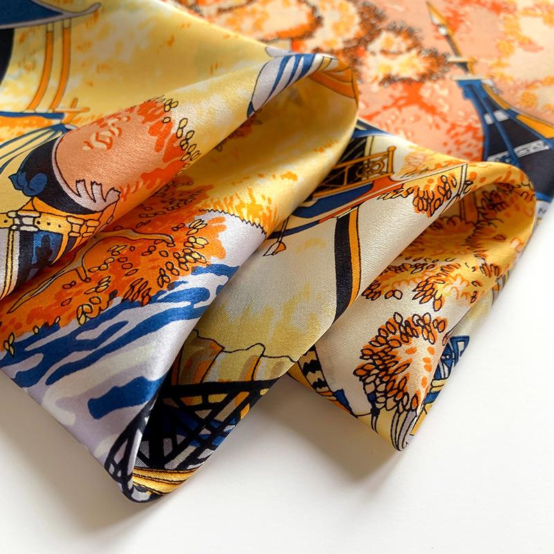 | Bufanda de seda sintética nueva de 2022, larga, de satén y seda, para vacaciones, con protector solar, venta al por mayor |