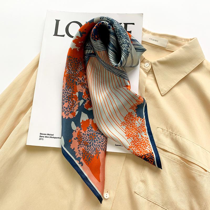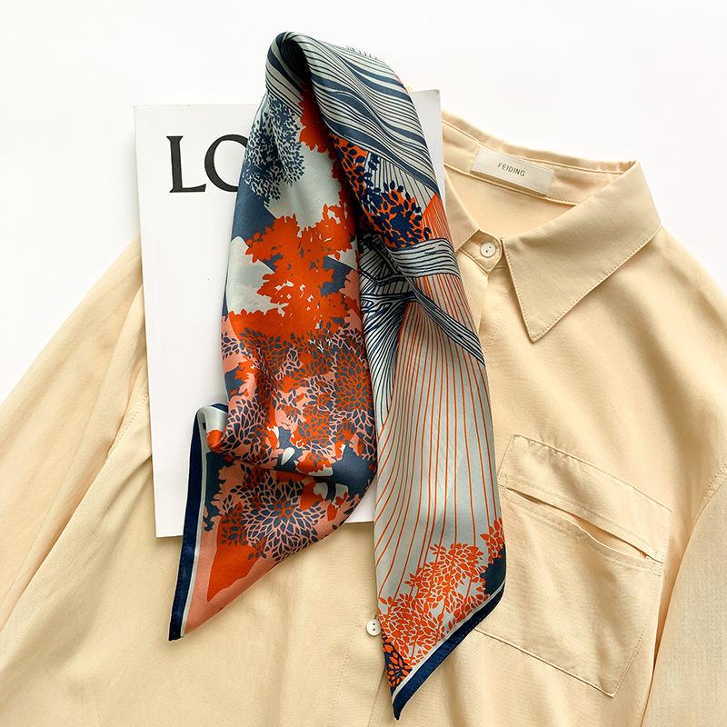 | Bufanda de seda retro, bufanda estrecha y larga de imitación de seda, decoración femenina con esquinas afiladas, decoración de moda, diadema de seda, bufanda al por mayor |