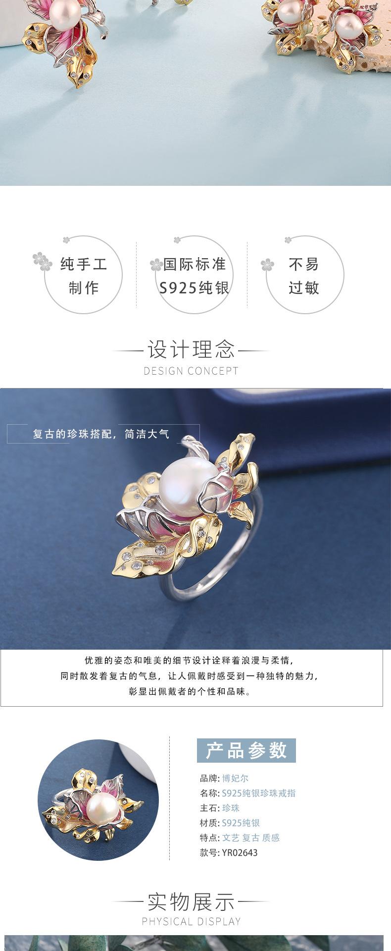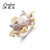 Compra Bofeier hecho a mano incrustado plata esterlina S925 anillo de perla barroca de agua dulce temperamento de personalidad femenina pulsera retro al por mayor en Joom.pro