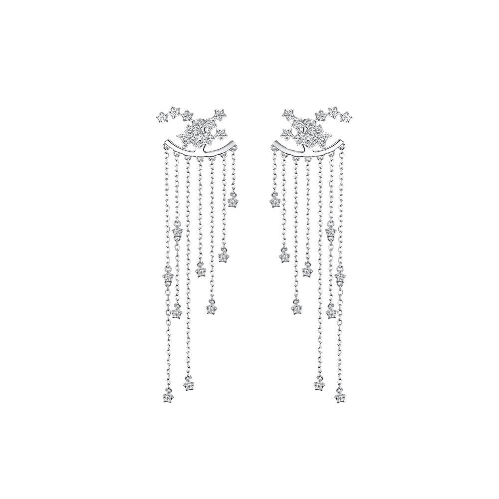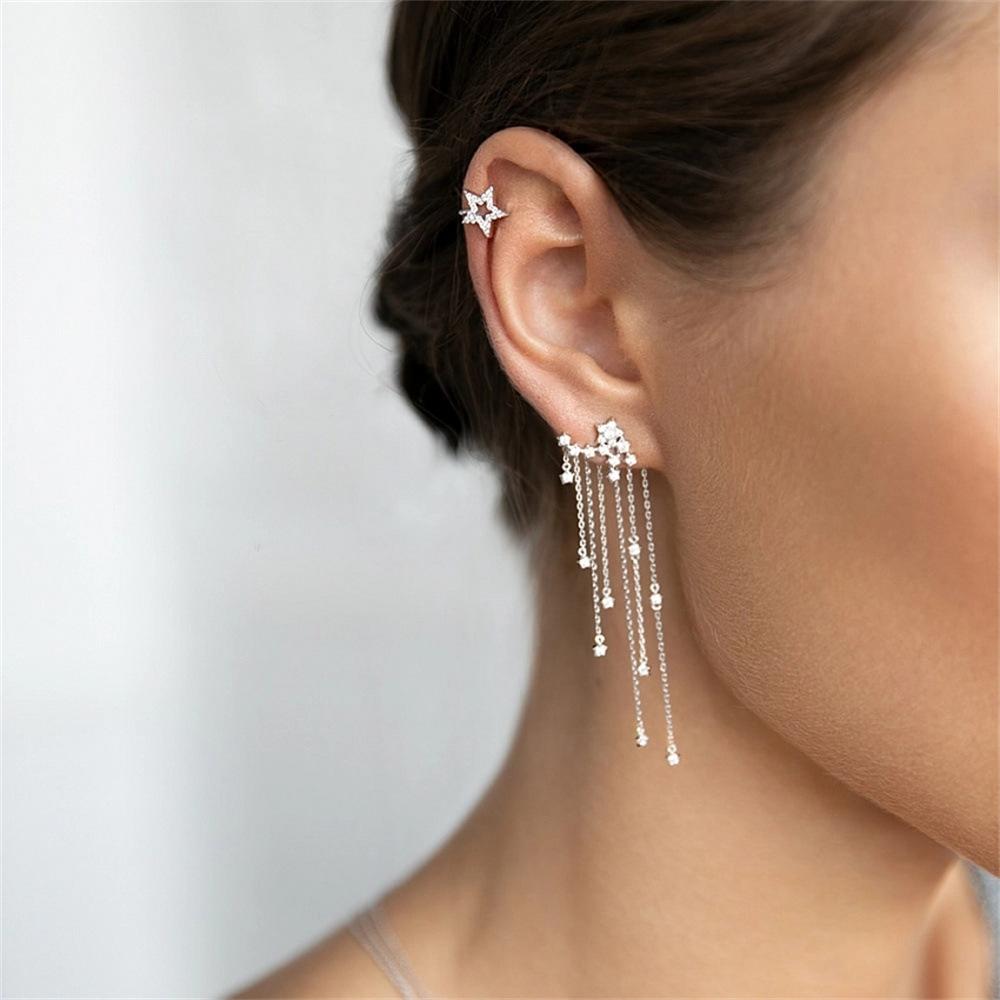 Aretes Colgantes de Moda Europeos y Americanos Transfronterizos S925 Plata Esterlina Estrella Brillante Borla Aretes Colgantes Traseros para Mujeres