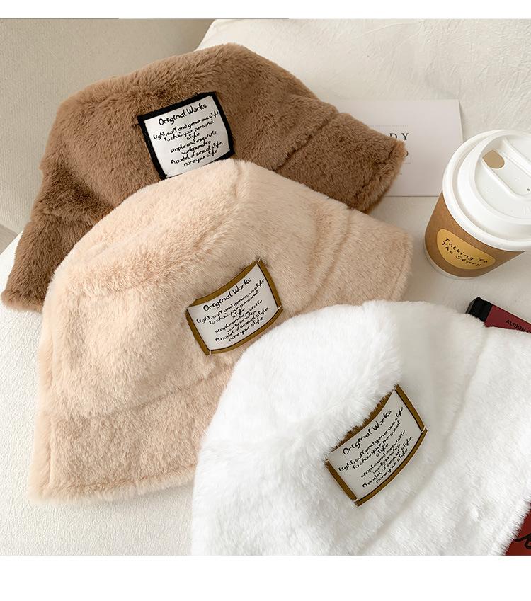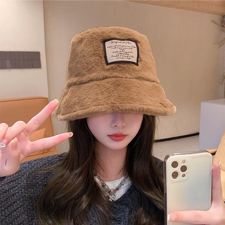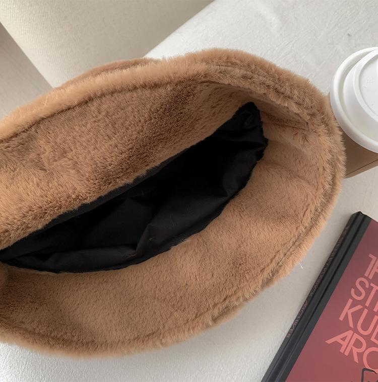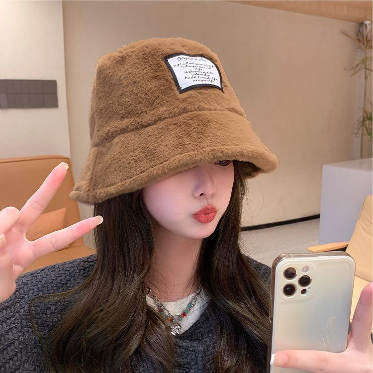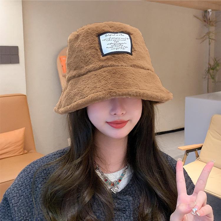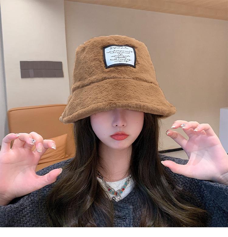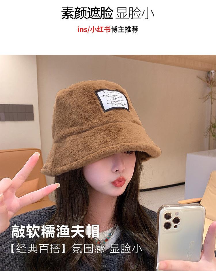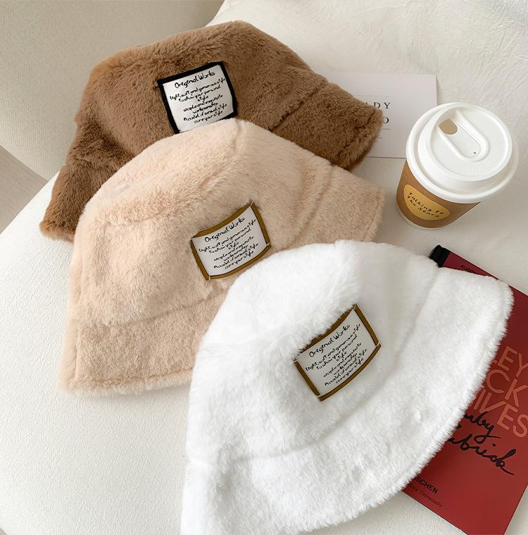 Sombrero nuevo de estilo coreano para mujer, estilo japonés, lindo, de felpa cálido, tipo pescador, casual para otoño e invierno, combina con todo, sombrero de cubeta pequeño que hace ver el rostro pequeño